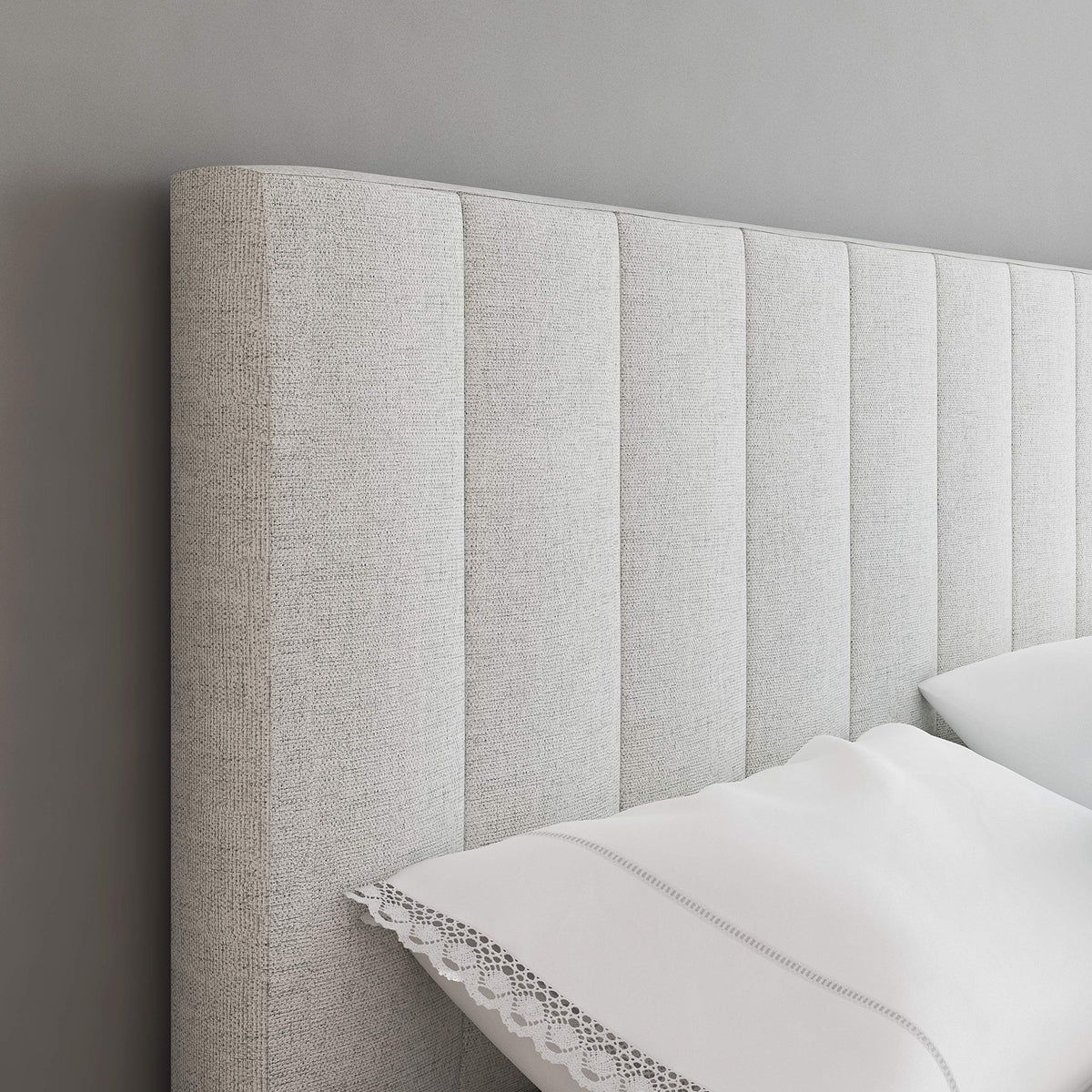 Boyd Sleep Leah Upholstered Vertical Tufted Platform Bed Frame Mattress Foundation With Headboard And Strong Wood Slat Supports: Linen, Eggshell, Full (Lhes969Db)