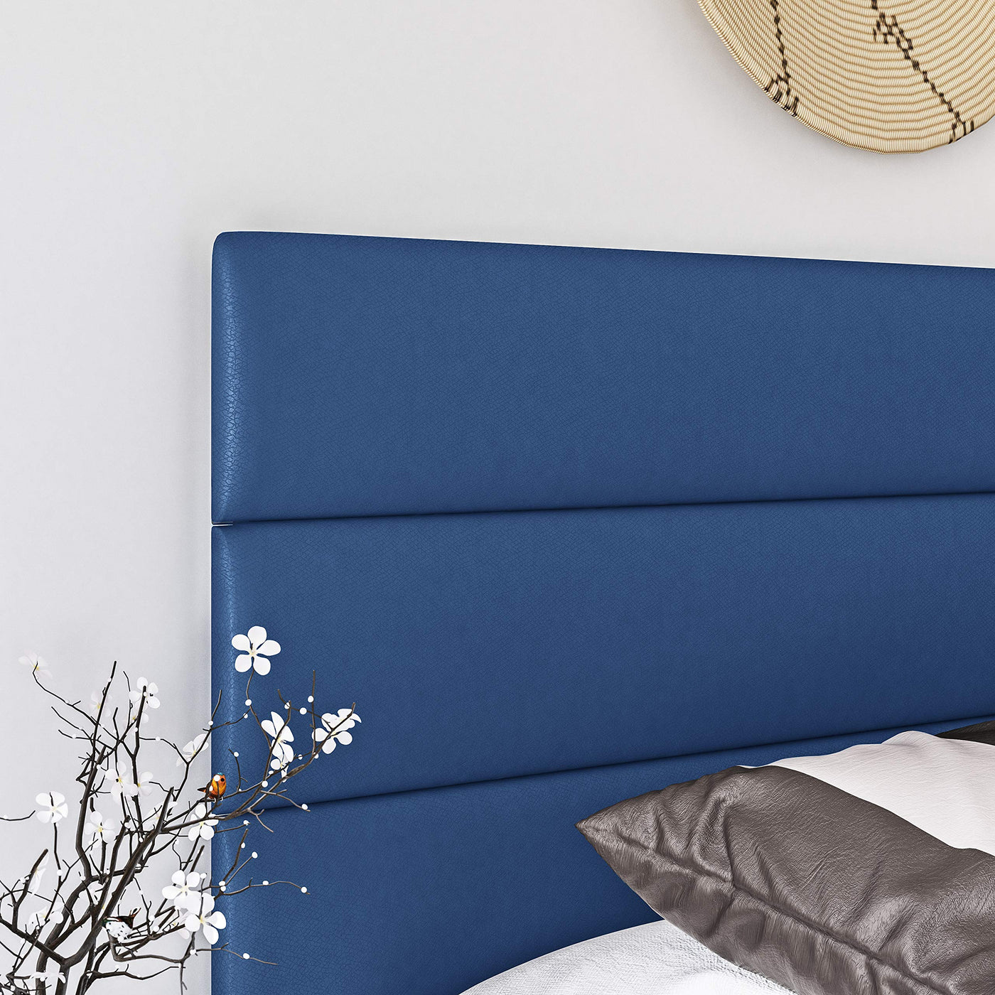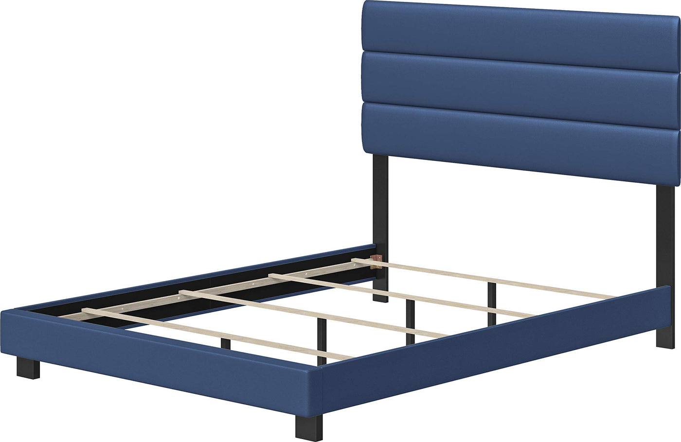 Boyd Sleep Montana Upholstered Platform Bed Frame Mattress Foundation With Tri-Panel Headboard And Strong Wood Slat Supports: Faux Leather, Blue, Full