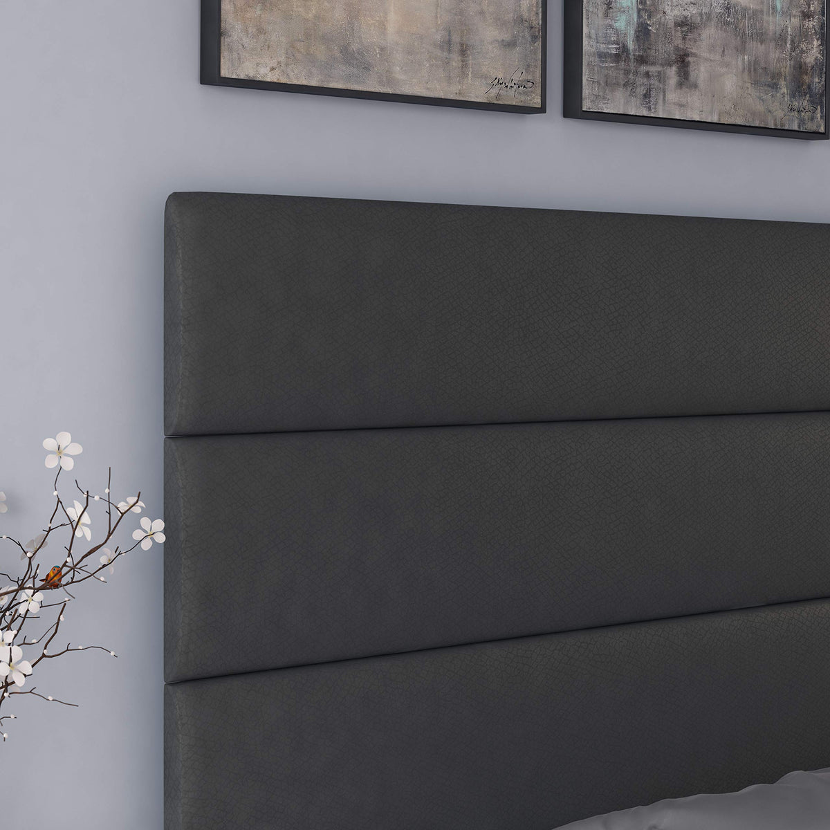 Boyd Sleep Piedmont Upholstered Platform Bed Frame Mattress Foundation With Tri-Panel Headboard And Strong Wood Slat Supports: Faux Leather, Black, Full