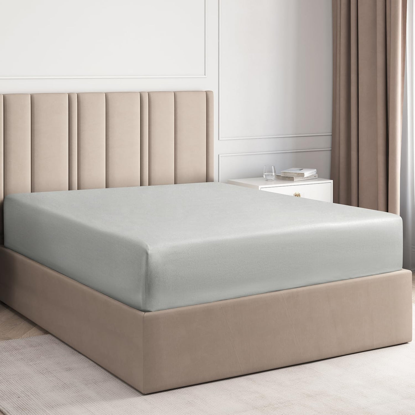 Soft & Comfortable, California King Premium Fitted Sheet - Deep Pockets to Easily Fit Over Tall Mattresses, Pillow-Top Mattresses, Mattress Toppers, or Padded Mattresses! Don’t settle for a low-quality, poorly stitched Cal King sheet that tears easily and feels rough and uncomfortable against the skin. At CGK Unlimited, we pride ourselves on our Deep Pocket California King Fitted Sheet giving you a premium quality, buttery soft, double-brushed fabric comfort for a deep, luxurious, restful sleep. Cooling and breathable, our machine-washable California King size fitted sheet is made of super-fine microfiber that resists pilling, tearing, shrinking, and fading. Unlike other California King size fitted sheets that are ill-fitting and a struggle to get on your bed, our California King fitted sheet has deep pockets to fit mattresses up to 16 inches tall, for a quicker, easier time making the bed. Fits over mattress toppers and air mattresses, too! CGK Unlimited’s California King single fitted sheet features: -1 Fitted Sheet (72” x 84”) -Premium 100% Brushed Fabric -Luxurious and Buttery Soft -Cooling and Breathable -Deep Pockets to Fit Mattresses up to 16” Deep -Easy to Care For -Machine Washable! At CGK Unlimited, we love giving our customers the gift of deep, luxurious sleep - at an affordable price. We have high standards for our bed sheets, and work hard to uphold those standards and keep our customers happy and well-rested. Our hotel quality, ultra soft California King sized sheets will leave you sleeping deeply.