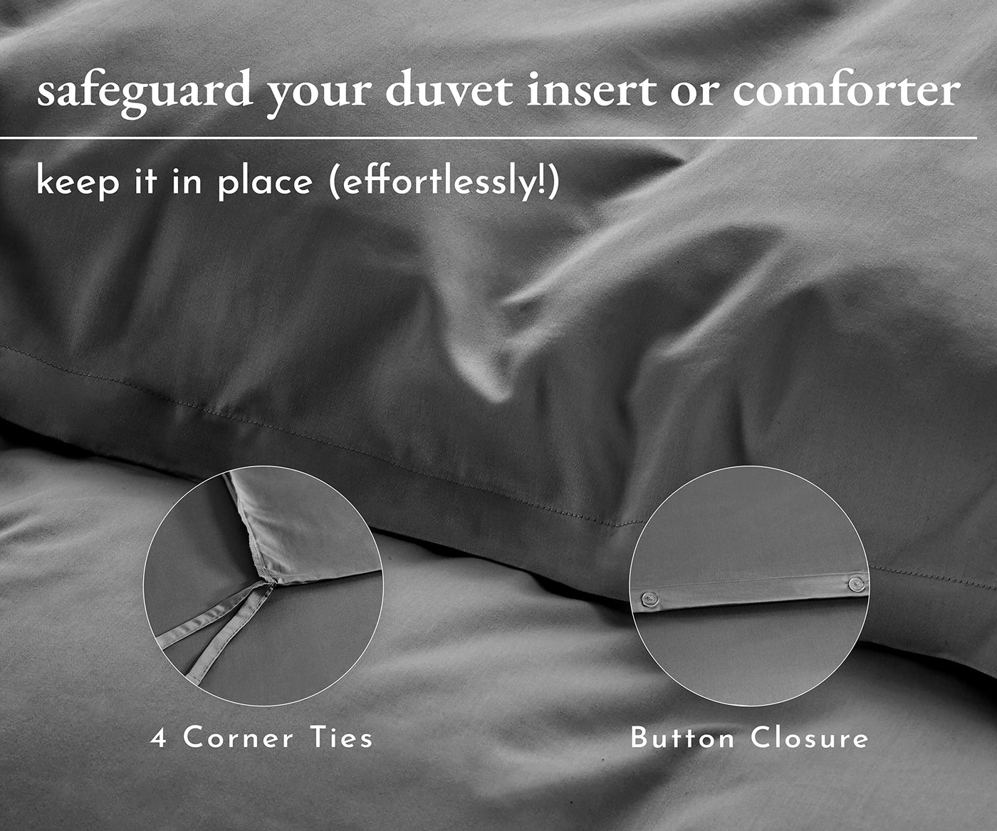 California Design Den 100% Natural Cotton Duvet Cover - Premium 400 Thread Count, Cooling Comforter Cover, Smooth Sateen Weave, Button Closure And Corner Ties (1 Piece, Dark Gray, Queen)