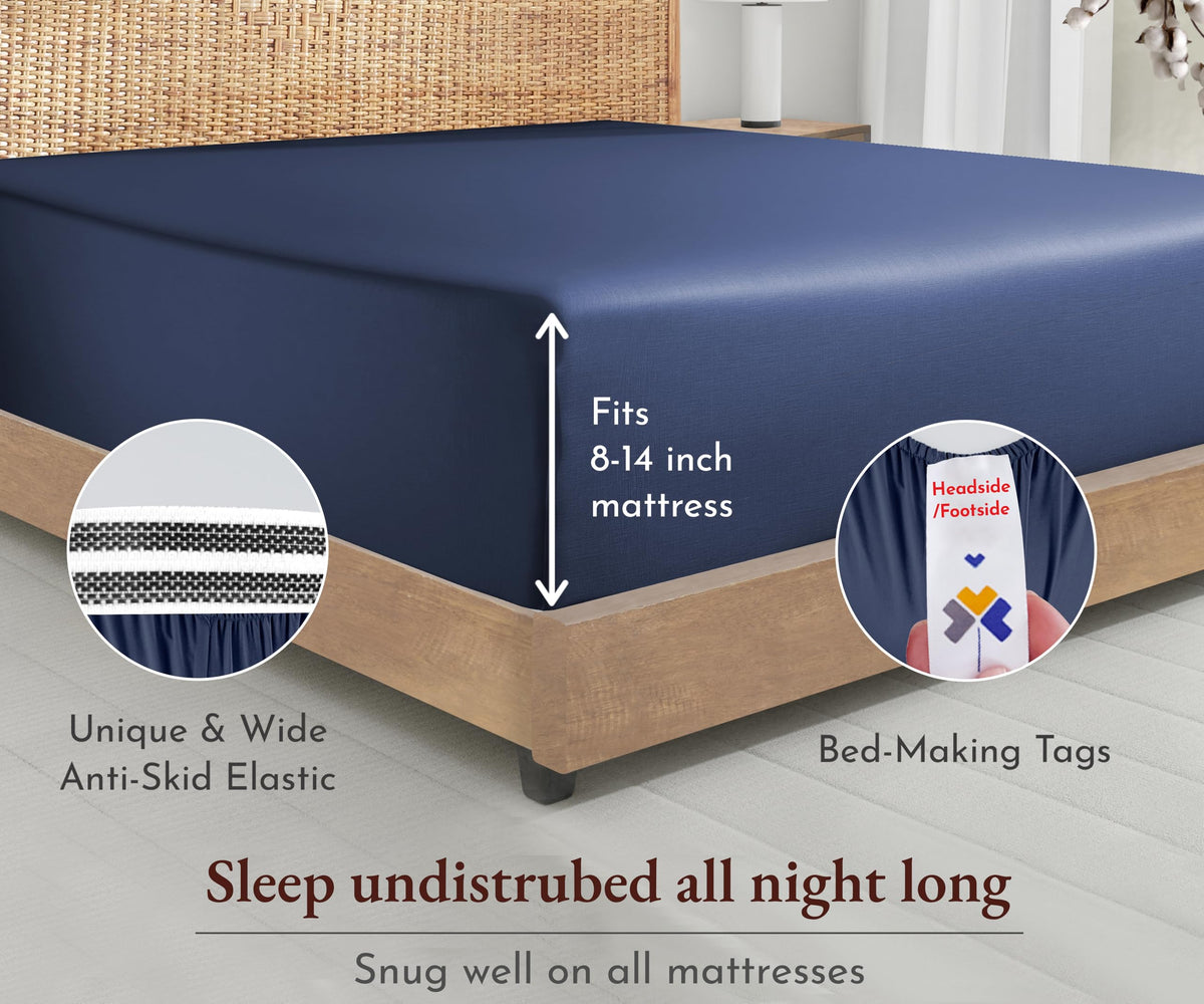 California Design Den 100% Organic Cotton Twin Xl Percale Sheets Fitted Sheet, Deep Pocket Fitted Organic Sheet, Lightweight, Snug-Fit, Dorm Rooms, 1 Pc Twin Extra Long Fitted Sheets Only (Navy Blue)