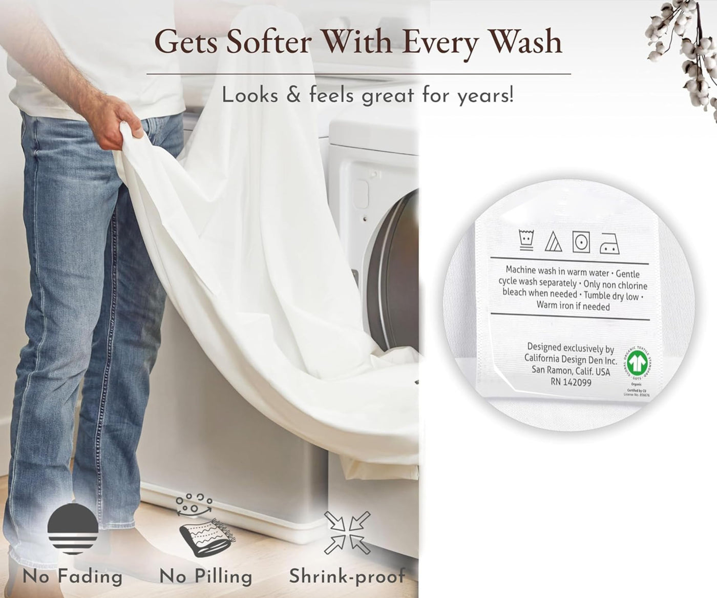 Experience the comfort of our fitted sheet, crafted from 100% organic cotton and certified by the Global Organic Textile Standard. The percale weave provides a cool, crisp feel, while the all-around elastic ensures a snug fit on your mattress. This lightweight and durable sheet is designed to keep you comfortable in all climates. Our fitted sheets feature smart head and foot side labels for easy bed making. Queen, King, Full, and California King size fitted sheets fit mattresses up to 15 inches deep, while Twin and Twin XL size fitted sheets fit mattresses up to 14 inches deep. The premium organic fibers are gentle on sensitive skin, and low-impact dyes provide lasting color. Extensive quality checks ensure defect-free sheets. Produced in a family-owned factory with responsible manufacturing processes, our sheets come in plastic-free packaging. Enjoy a restful night's sleep knowing that your bedding is made from natural and safe materials. Upgrade your bedding with our fitted sheets and experience the combination of comfort, quality, and sustainability.