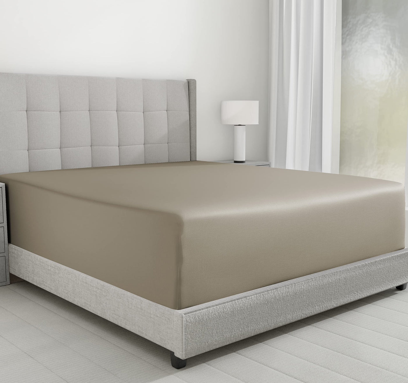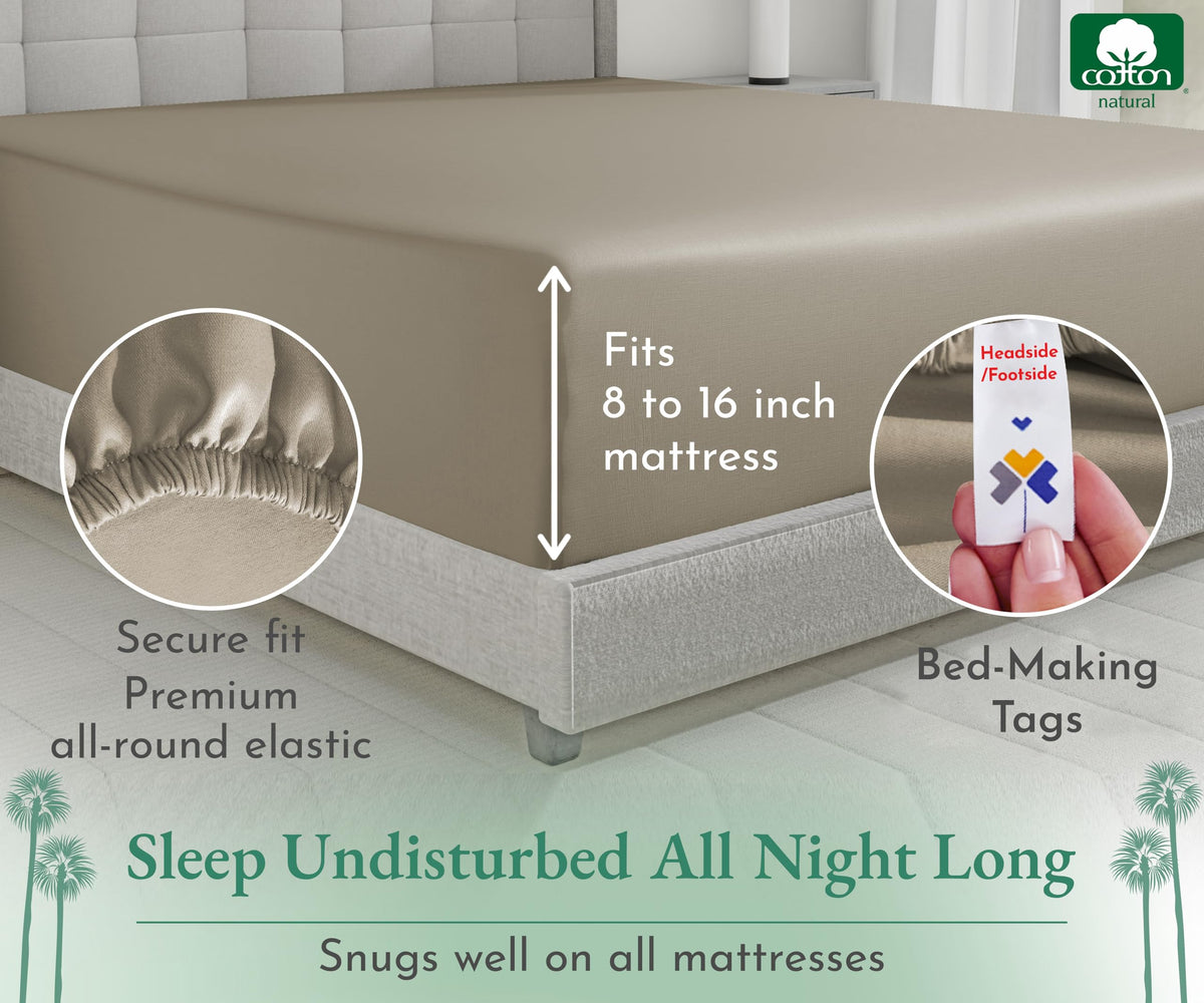 California Design Den Luxurious King Size Fitted Sheet Only - 100% Cotton, 600 Thread Count, Soft Deep Pocket Bottom Fitted Sheet, Sateen Weave, Hotel Quality, Featuring Foot Side Indicator - Taupe