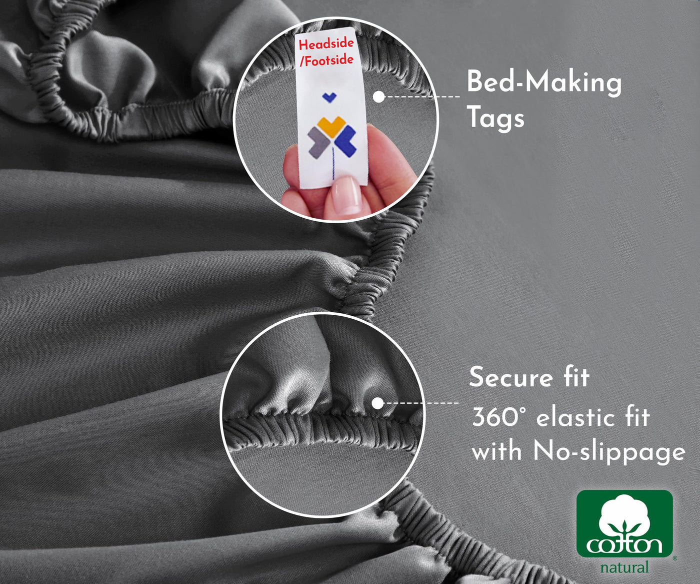 California Design Den Queen Fitted Sheet Only, Soft 100% Cotton Sateen, Deep Pocket, Durable All-Around Elastic, Head/Foot Side Indicators, Queen Size Fitted Sheet (Grey)