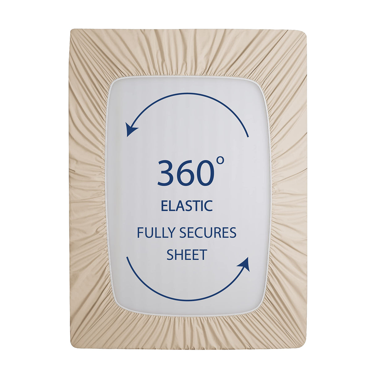 Cathay Home Full Fitted Sheet - Double Brushed Ultra Soft – Wrinkle & Fade Resistant - 16' Deep Pocket Fitted Sheet Only - Good Fit For 14'-18' Deep Mattress (Full, Cream)