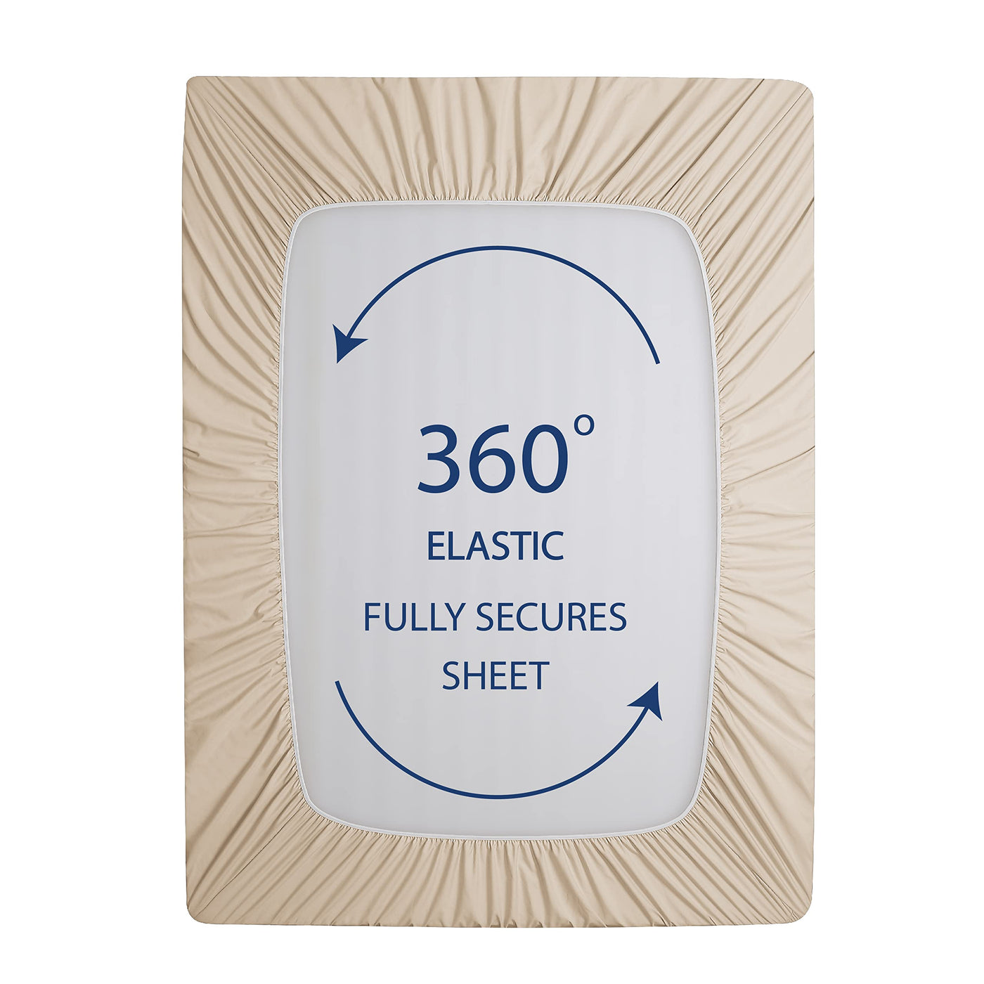 Cathay Home King Fitted Sheet - Double Brushed Ultra Soft - Wrinkle & Fade Resistant - 21' Extra Deep Pocket Fitted Sheet Only - Good Fit For 19'-23' Deep Mattress (King, Cream)
