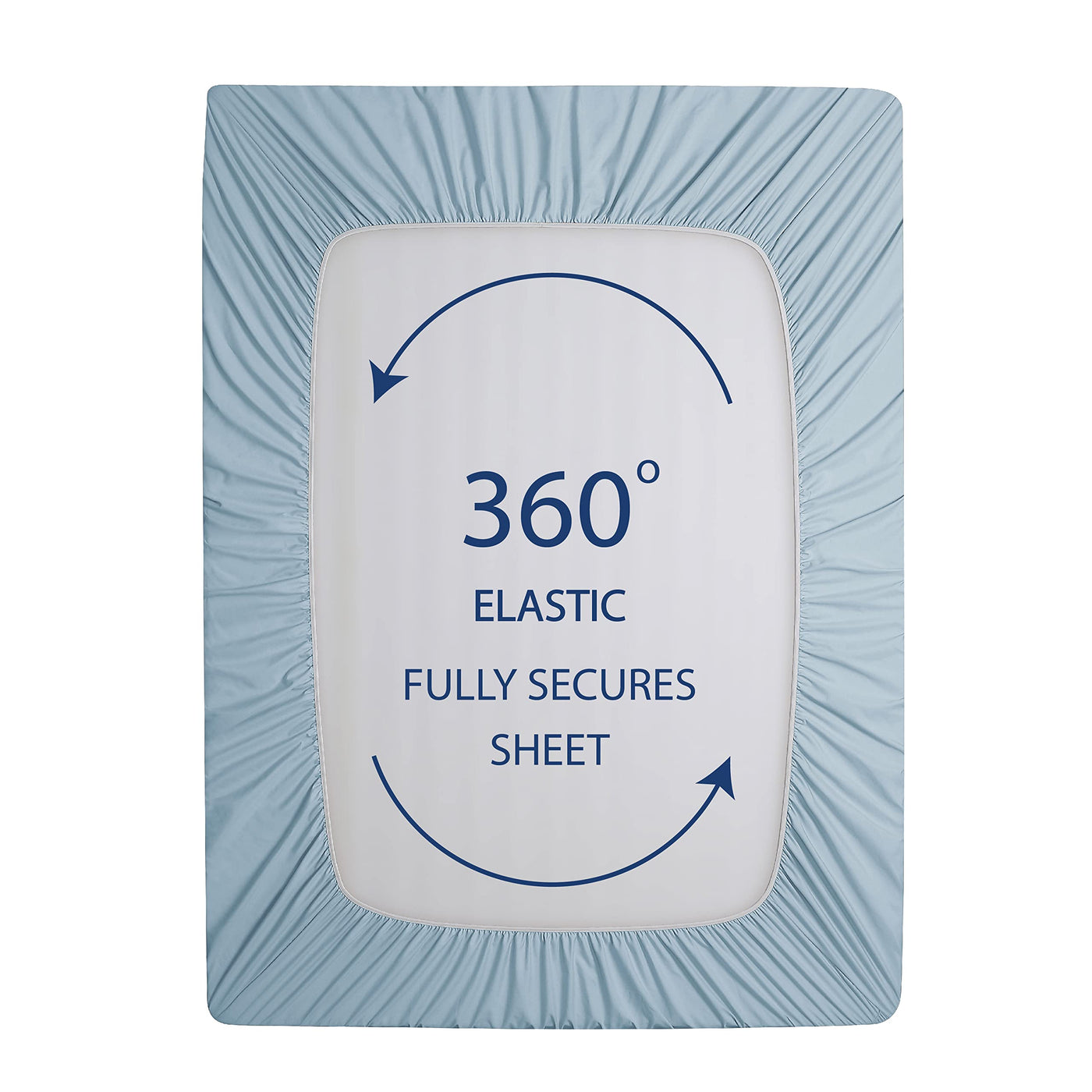 Cathay Home Twin Fitted Sheet - Double Brushed Ultra Soft - Wrinkle & Fade Resistant - 21' Extra Deep Pocket Fitted Sheet Only - Good Fit For 19'-23' Deep Mattress (Twin, Blue Fog)