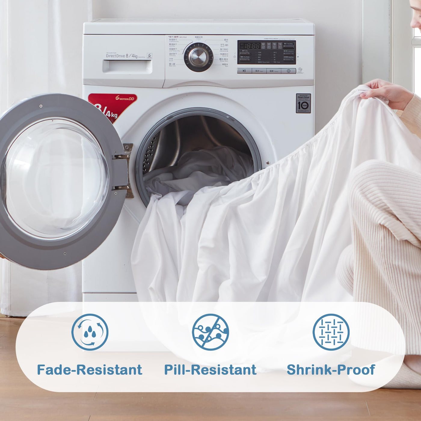 COOLMAX SMART TECHNOLOGY: Our original wicking performance fabric that moves moisture away from the skin. Specially engineered fibers allow for high-performance fabrics that are soft, breathable, and moisture-wicking. COOLING & DRY FAST: Enhanced with a proprietary superior blend of ultra-fine microfiber along with moisture absorbing CoolMax fabric, which spreads moisture out across the fabric to increase the evaporative drying rate to keep you cool and dry throughout the night. PERFECT FOR HOT SLEEPERS WITH SUPERIOR SOFTNESS: Ultra-fine microfiber mixed with Coolmax fabric enhancing your cooling experiences while maintaining cozy and softness. A great help for people with night sweats during warm weather. PACKAGE INCLUDES - Flat Sheet 90 W x 102 L inches; 1 Fitted Sheet 60 W x 80 L x 14 D inches(fits up to 18 inch mattresses); 2 Pillow Cases 20 W x 30 L inches. Our included fitted sheet will cover most mattress depth. Corners DON’T RIDE UP - creating a smooth, wrinkle free bedding that beckons you to relax on it, every night. BUILT TO LAST: SATISFACTION GUARANTEE – WE KNOW YOU’RE TIRED OF buying inferior sheets that pill, shrink and fade after only the first few uses. That’s why we engineered our sheets to last as long as possible with REINFORCED STITCHES and ROBUST SEAMS that ensure longevity. Care instructions: Machine wash cold on gentle cycle, tumble dry on low heat, do not bleach.