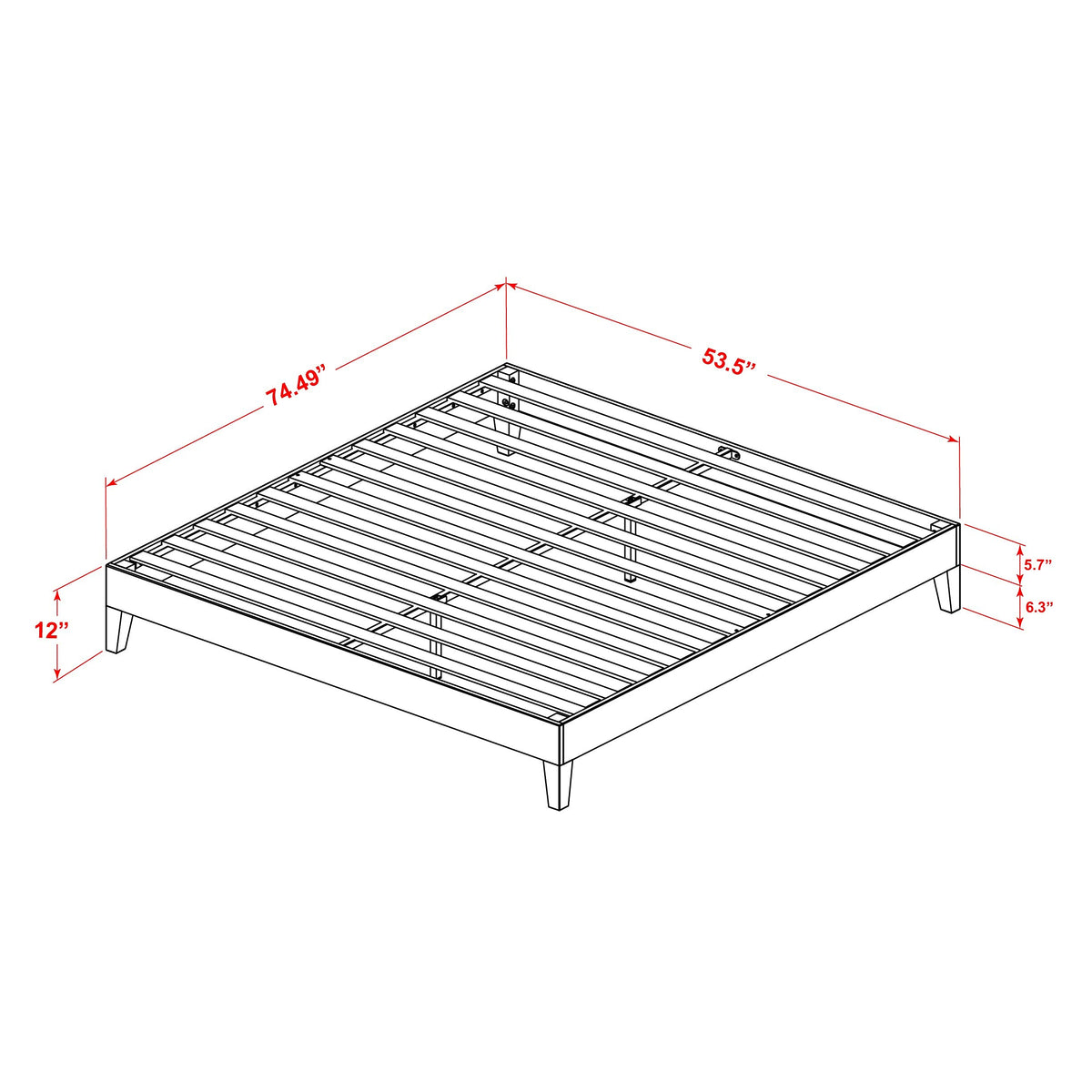 EAST WEST FURNITURE - NVP-23-F - FULL PLATFORM BED FRAMEIntroducing this exquisite full-size bed frame that serves as a beautiful addition to any bedroom in your home. Finished in an exceptional Oak color, our full-size platform bed frame becomes the perfect centerpiece for any bedroom. Its attractive color combination allows easy matching with various bedroom decors. The bed frame is crafted from robust wood, featuring a footboard, 4 wooden legs, and slats with 2 center support legs. Its versatility ensures it becomes the focal point of your bedroom. Constructed with engineered wood for durability and security, our sturdy wood frame guarantees comfort and peace of mind. The bed frame utilizes durable wood slats, eliminating the need for a box spring, and extending the life of your mattress. Additionally, the space beneath the full-size platform bed provides ample room for storing your belongings. Assembling the bed frame is a breeze, thanks to the included assembly instructions, tools, and hardware in the package. Cleaning the full bed frame is simple and consistently maintains its appealing appearance.WOOD BED FRAME FEATURES: Material: Engineered Wood Bed Frame Color: Oak Dimensions of Size Bed Frame: Length: 74.49; Width: 53.5; Height: 12.Include in this Package: 1 Platform BedNote: Mattress is not included with this Full Bed.
