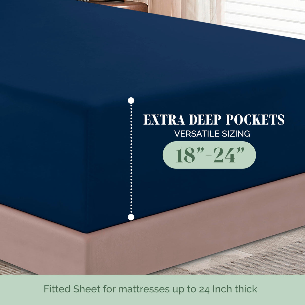 Elegant Comfort 1500 Premium Hotel Quality 18-24 Inches Deep - Extra Deep Pocket Single Fitted Sheet For High Mattress, Luxury And Softest, Smart Pocket - Wrinkle Free, Full, Navy Blue