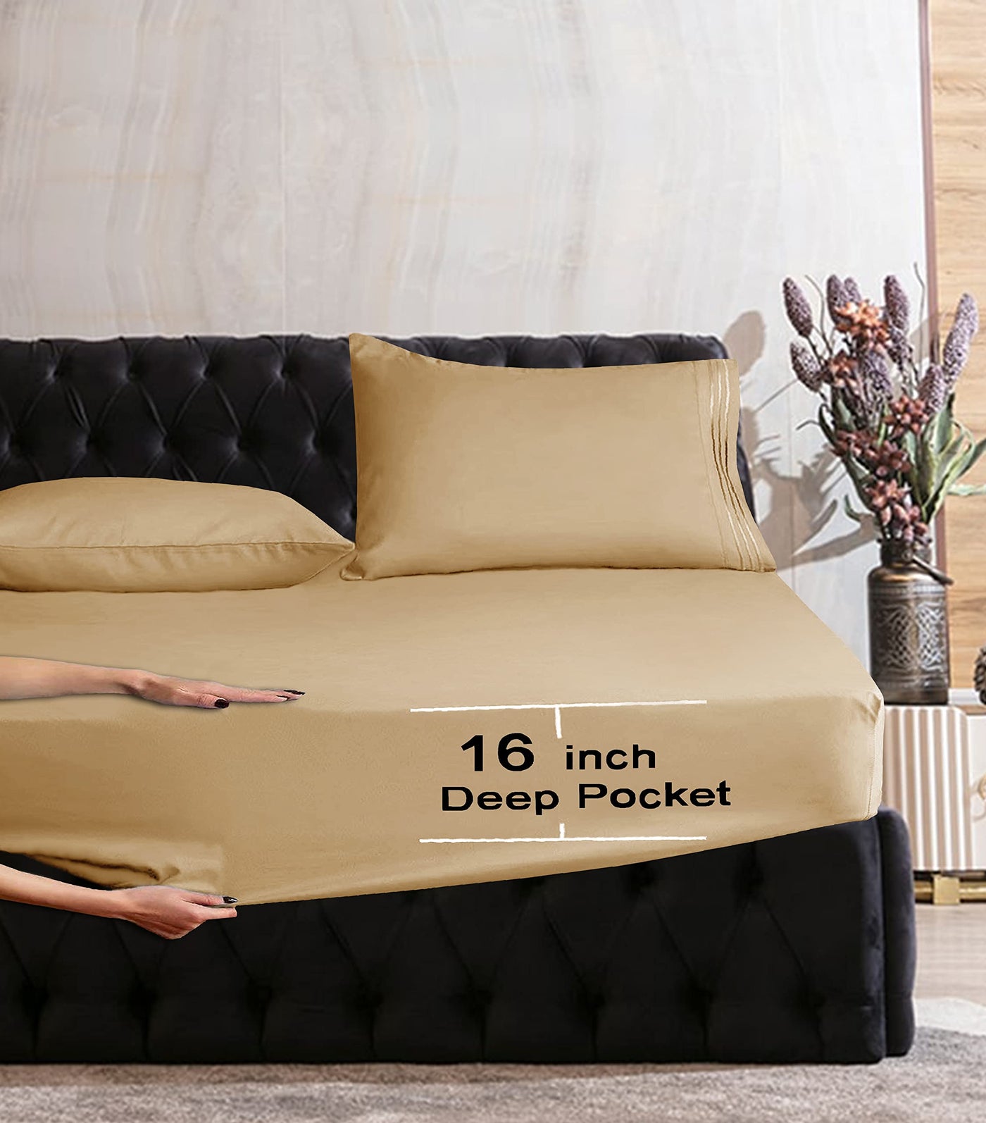 Experience luxury like you've never felt before. Elegant Comfort Fitted Sheets that feel almost hedonistic, this sumptuous set is going to bring your dreams to a whole new level. Add in delightfully soft, ultra-plush and you'll truly feel pampered. These fitted sheets are crafted from incredible, wrinkle-free microfiber and features an elastic all around with 16 inch deep pockets. Luxury hospitality Fitted sheet designed for institutional and home use. Hotel customers have rated these sheets as very comfortable, soft and smooth. 100-Percent microfiber, in manufacturing they are called 'peach soft skin' - the most smooth feel in the industry. It's available in a variety of beautiful colors, and no matter which one you choose, when morning comes and the alarm clock goes off, you just might be tempted to crawl farther beneath these sheets and try to pick up where your dreams left off. Available Sizes: Twin/Twin XL, Full, Queen, King, California King