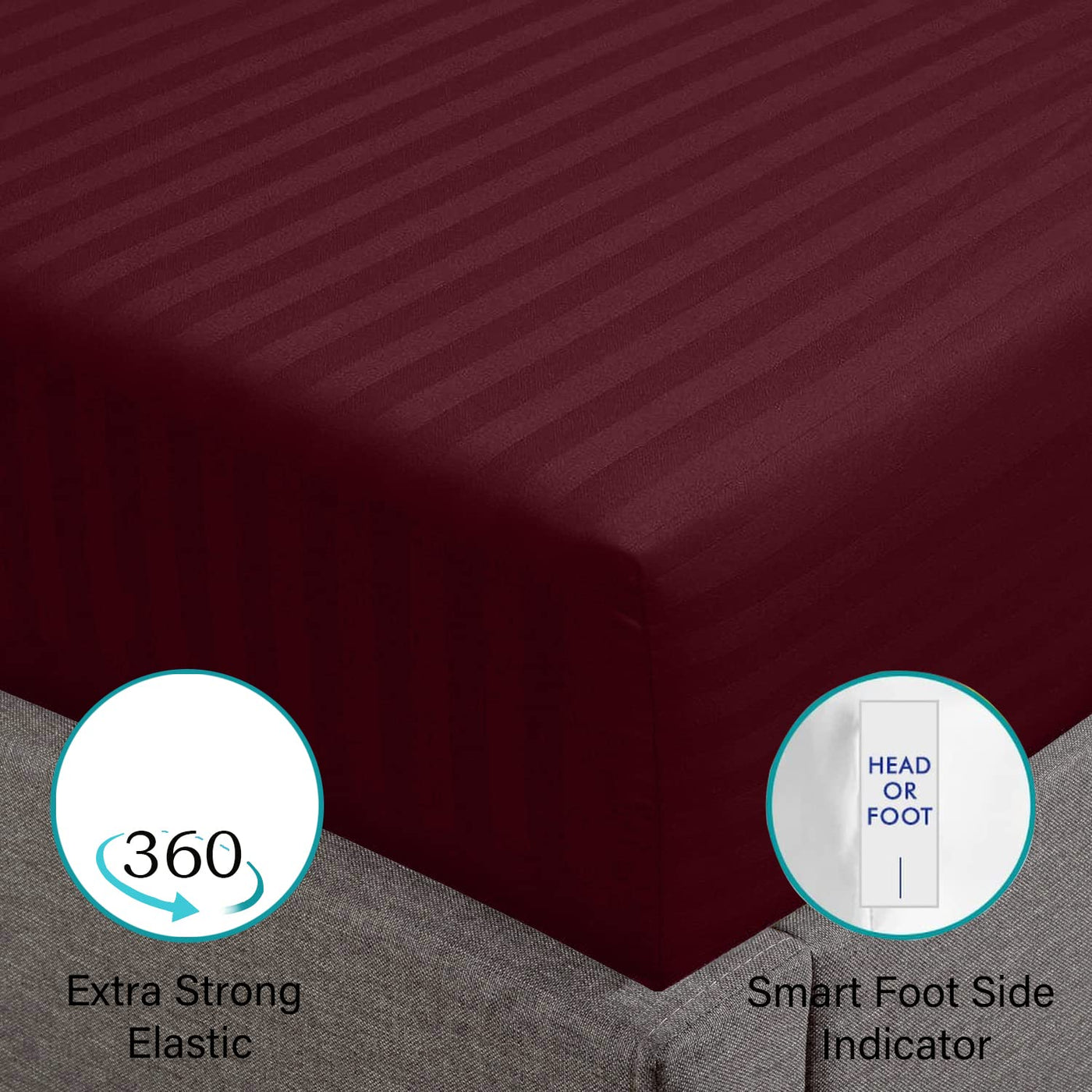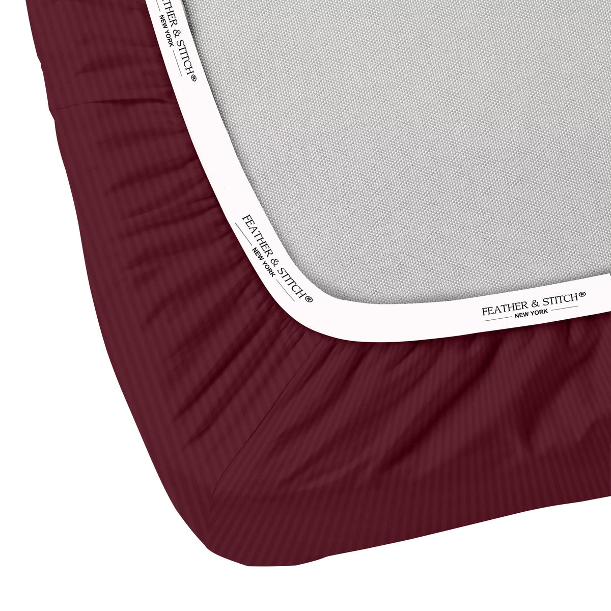 Feather & Stitch 1 Piece Damask Stripe Fitted Sheet California King Size Burgundy 500 Thread Count 100% Cotton Fitted Bottom Sheet 18 Inch Deep Pocket Stretchable Boxer Elastic Fit Mattress Perfectly