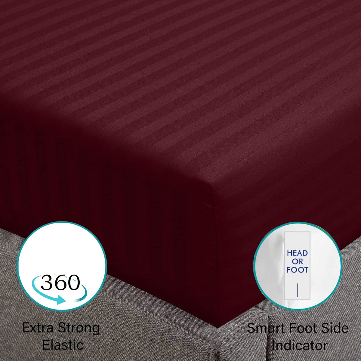 Feather & Stitch 100% Cotton 1 Piece Damask Stripe Full Fitted Sheet 500 Thread Count Burgundy 18' Extra Deep Pocket Luxury Sateen Weave Stretchable Boxer Elastic Fits Mattress Perfectly