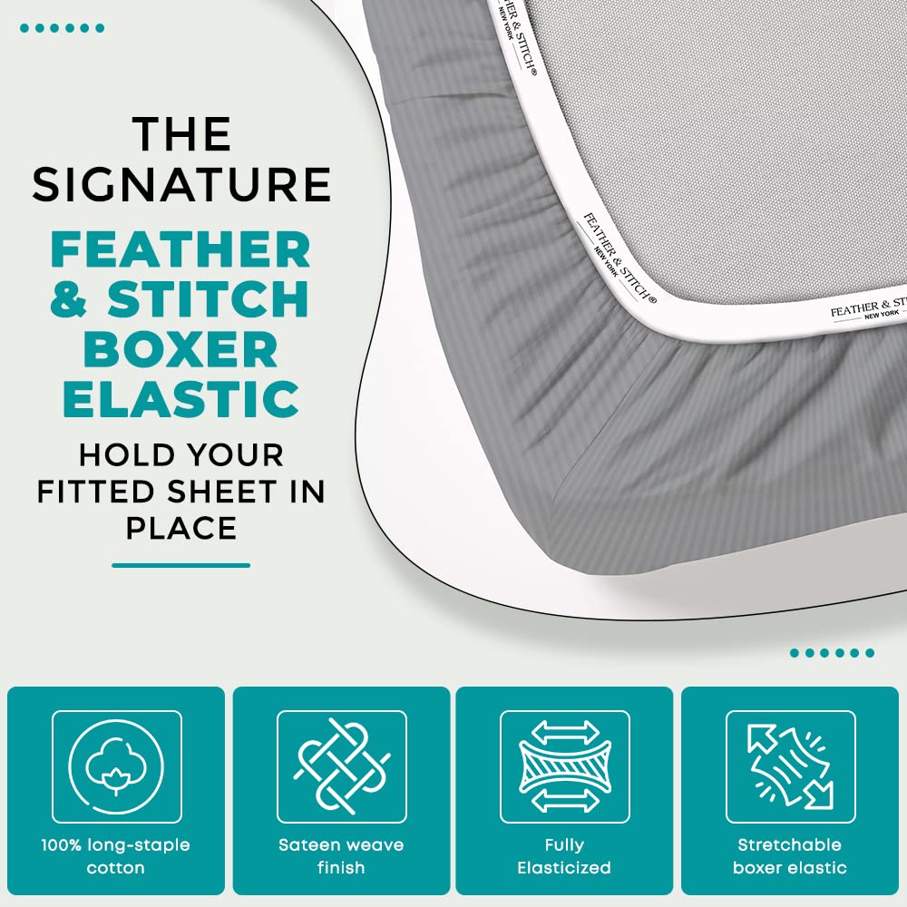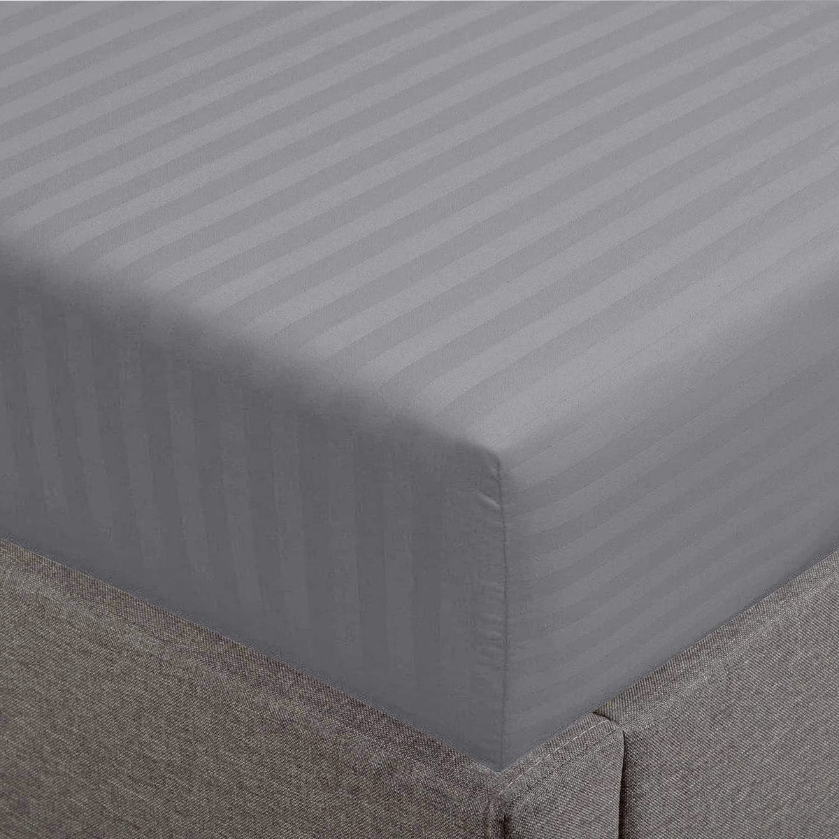 Feather & Stitch 100% Cotton 1 Piece Damask Stripe Full Fitted Sheet 500 Thread Count Grey 18 Inch Extra Deep Pocket Luxury Sateen Weave Stretchable Boxer Elastic Fits Mattress Perfectly