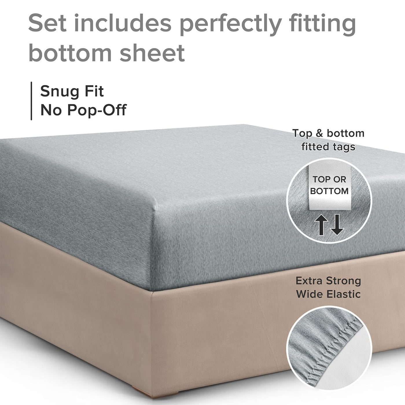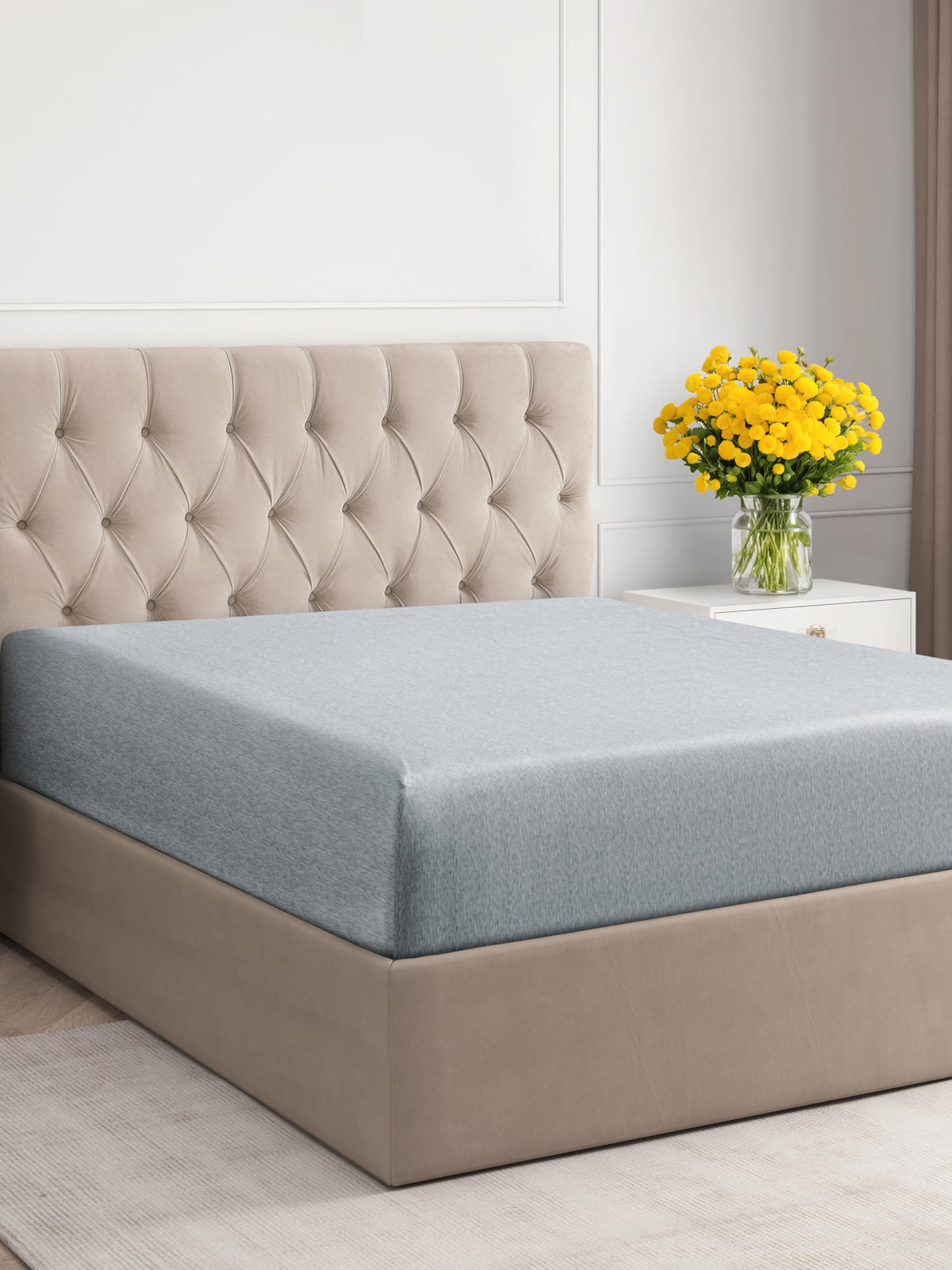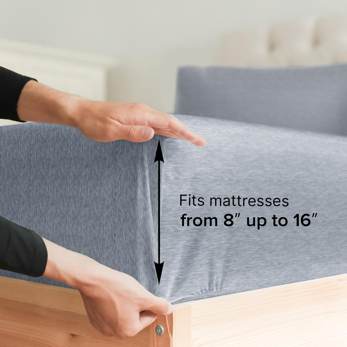 Full Size Fitted Bed Sheet - Hotel Luxury Single Fitted Sheet Only - Fits Mattress Up To 16 - Extra Soft, Wrinkle Free, Breathable Sheet - Bottom Fitted Sheet - Heathered Blue Single Fitted Sheet Only