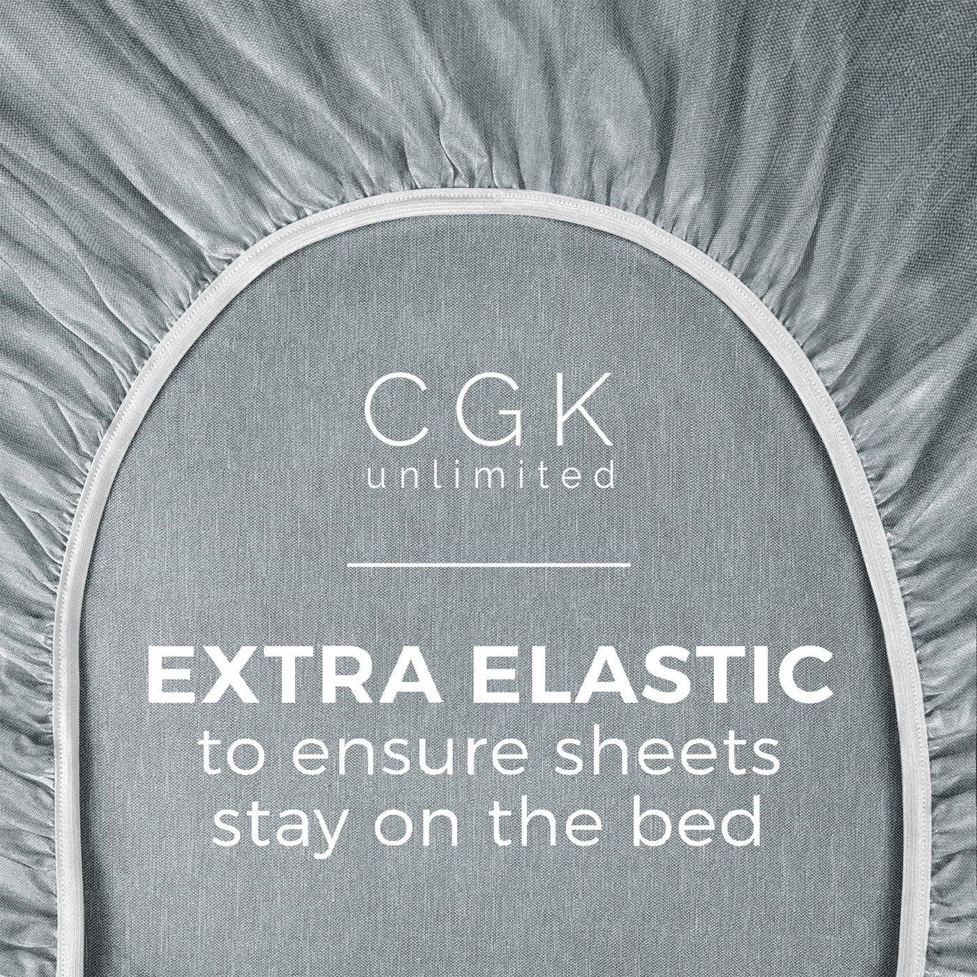 Soft & Comfortable, Full Premium Fitted Sheet Pairs Perfectly with Our Sheet & Pillowcase Sets - Deep Pockets to Easily Fit Over Tall Mattresses, Pillow-Top Mattresses, Mattress Toppers, or Padded Mattresses! Don’t settle for a low-quality, poorly stitched Full sheet that tears easily and feels rough and uncomfortable against the skin. At CGK Unlimited, we pride ourselves on our Deep Pocket Full Fitted Sheet giving you a premium quality, buttery soft, double-brushed fabric comfort for a deep, luxurious, restful sleep. Cooling and breathable, our machine-washable Full size fitted sheet is made of super-fine microfiber that resists pilling, tearing, shrinking, and fading. Unlike other Full size fitted sheets that are ill-fitting and a struggle to get on your bed, our Full fitted sheet has deep pockets to fit mattresses up to 16 inches tall, for a quicker, easier time making the bed. Fits over mattress toppers and air mattresses, too! CGK Unlimited’s Full single fitted sheet features: -1 Fitted Sheet (54” x 75”) -Premium 100% Brushed Fabric -Luxurious and Buttery Soft -Cooling and Breathable -Deep Pockets to Fit Mattresses up to 16” Deep -Easy to Care For -Machine Washable! At CGK Unlimited, we love giving our customers the gift of deep, luxurious sleep - at an affordable price. We have high standards for our sheets, and work hard to uphold those standards and keep our customers happy and well-rested. Our hotel quality, ultra soft Full sized sheets will leave you sleeping deeply. Mix and match with other coordinating CGK Sheet & Pillowcase Sets.