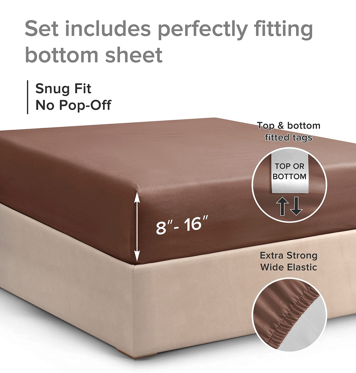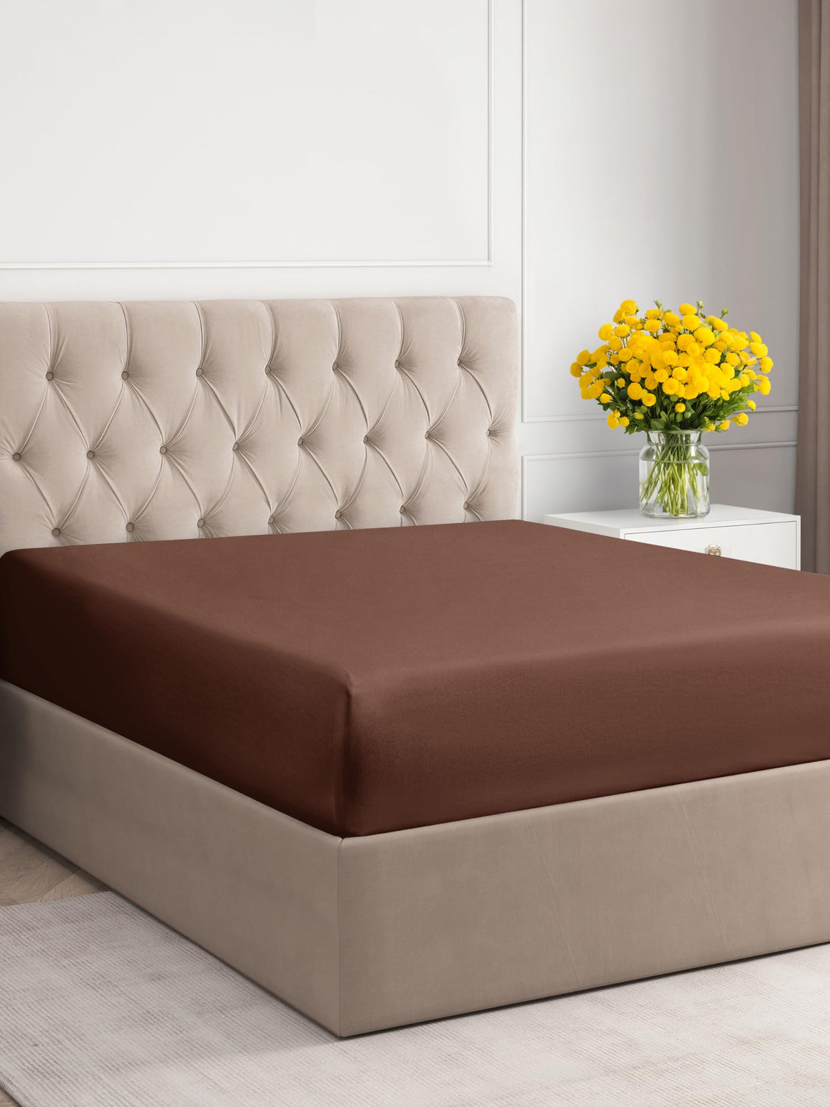 King Fitted Bed Sheet - Hotel Luxury & Cooling Single Fitted Sheet Only - Easily Fits Mattress Up To 16 Inches Perfectly - Soft, Wrinkle Free, Breathable & Comfy Brown Single Fitted Bed Sheet