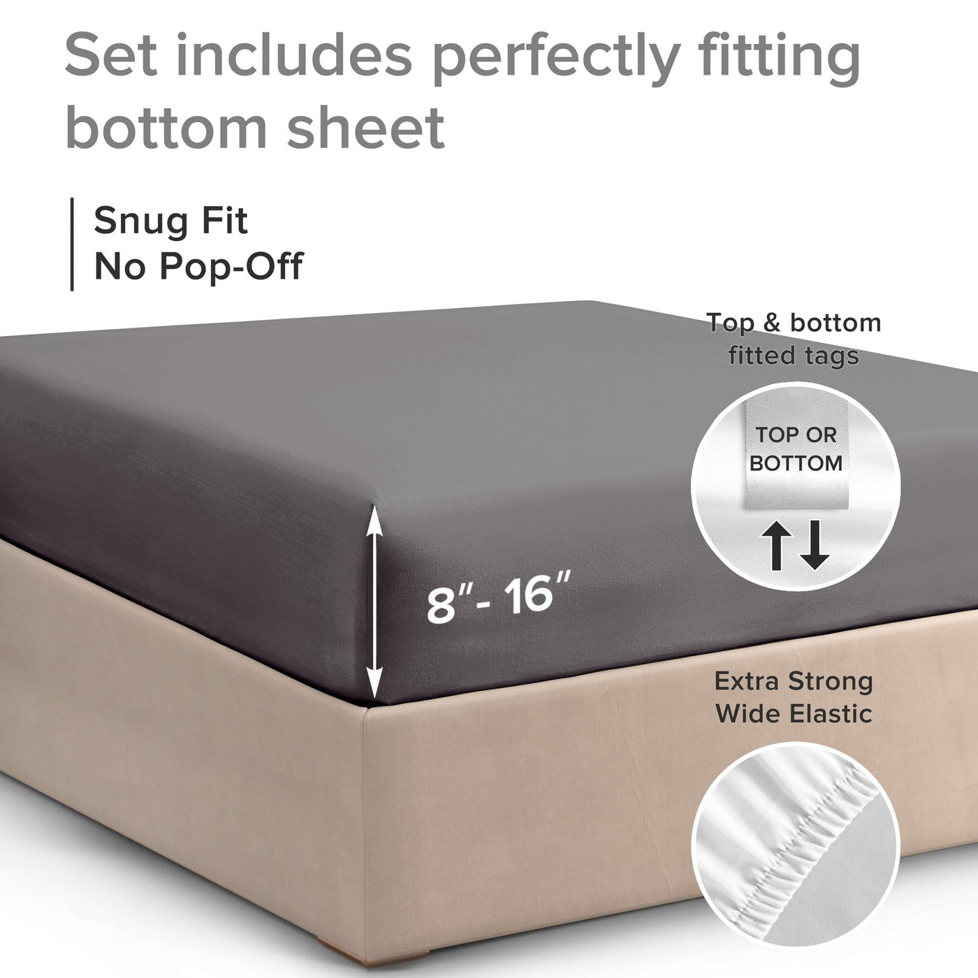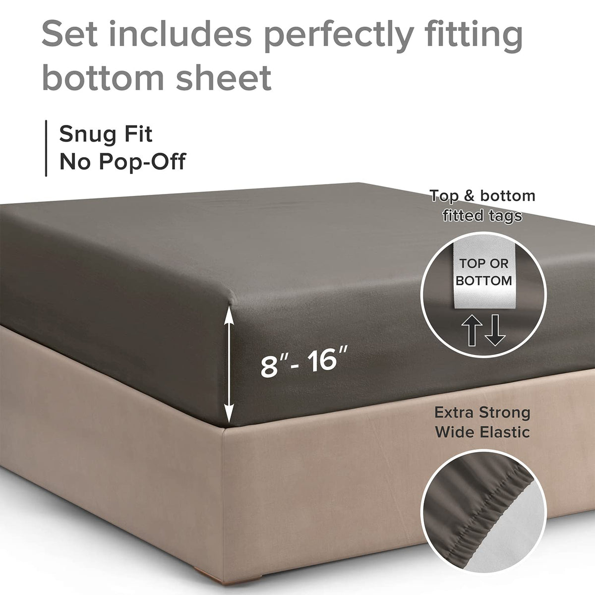 King Fitted Bed Sheet - Hotel Luxury & Cooling Single Fitted Sheet Only - Easily Fits Mattress Up To 16 Inches Perfectly - Soft, Wrinkle Free, Breathable & Comfy Dark Grey Single Fitted Bed Sheet