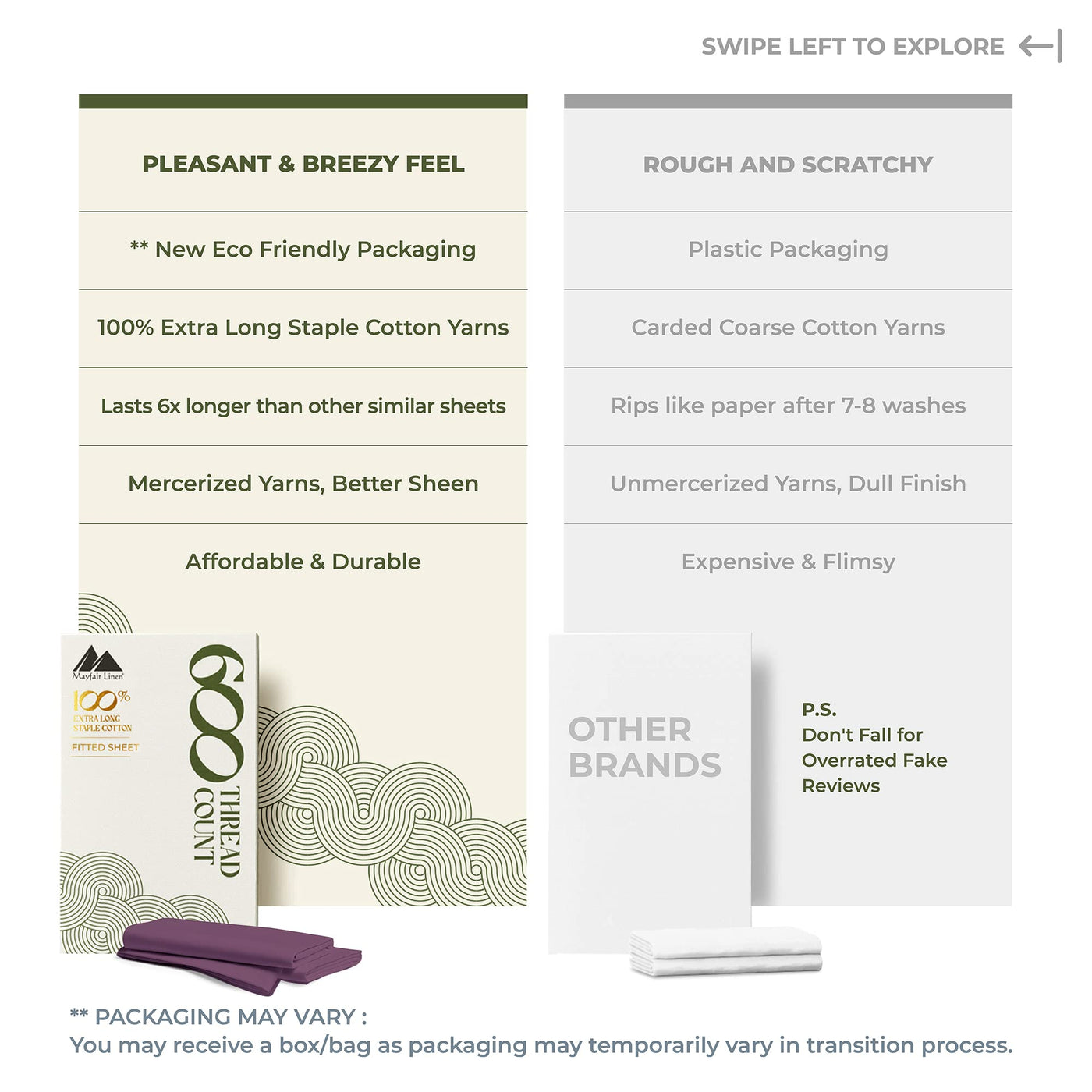 Mayfair Linen 100% Egyptian Cotton California King Fitted Sheet Only - 600 Thread Count Cal King Sheets Deep Pocket Fitted, Cool Sateen No Pop-Off Elastic Bottom Sheet, Fits Mattress Upto 18' - Plum