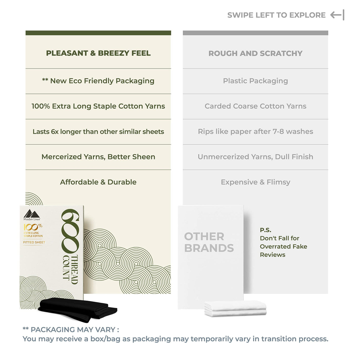 Mayfair Linen Twin Xl Fitted Sheet Only - 100% Egyptian Cotton 600 Thread Count 16' Deep Pocket Fitted Sheet Twin Xl, Soft Cooling Sateen Weave Bottom Sheet, Fits College Dorm Mattress - Black