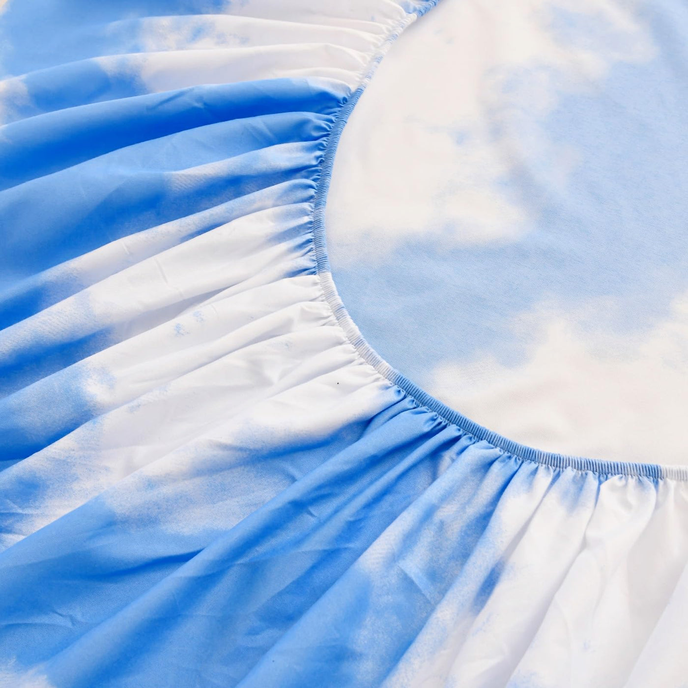 Naturety Bedding Fitted Sheet With Deep Pocket For Single Bed Mattress Cover Sheets,White Cloud Printed Fabric Bed Sheets (Blue Sky, Twin)