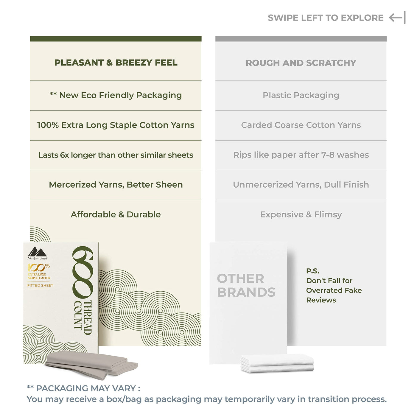 New Better & Improved 2023 Version - An authentic Fitted Sheet 600 Thread Count weave delivers the durability of Hotel Sheets. We use yarns made with 100% long staple cotton fiber and a gorgeous sateen weave. Upgrade your living space with this luxury 600-thread-count fitted sheet, available in several classic and bold colors.