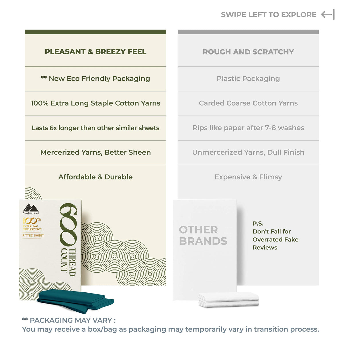 New Better & Improved 2022 Version - An authentic Fitted Sheet 600 Thread Count weave delivers the durability of Hotel Sheets. We use yarns made with 100% long staple cotton fiber and a gorgeous sateen weave. Upgrade your living space with this luxury 600-thread-count fitted sheet, available in several classic and bold colors.