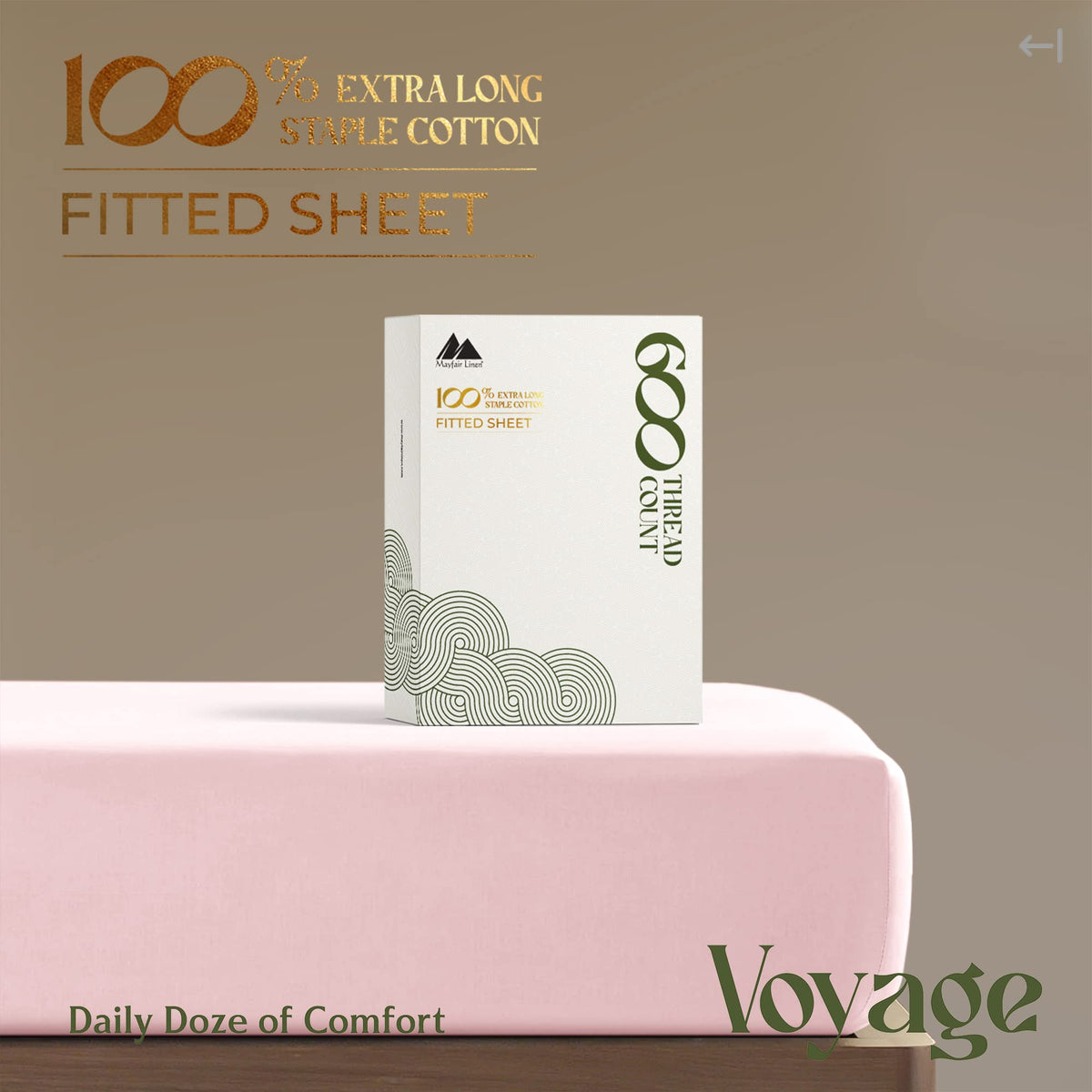 Premium Hotel Quality 1-Piece 100% Cotton Fitted Sheet, Luxury & Softest 600 Thread Count Egyptian Feel Sateen Weave Bottom Sheet, Deep Pocket Up To 18 Inch, Full Size, Blush