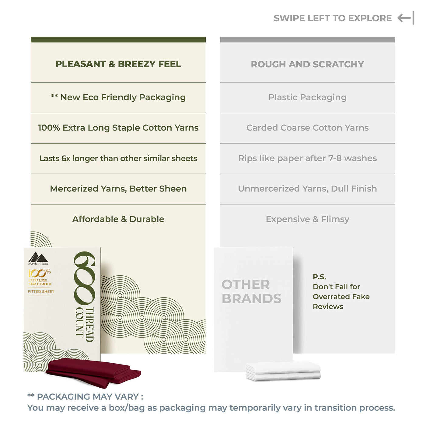 New Better & Improved 2023 Version - An authentic Fitted Sheet 600 Thread Count weave delivers the durability of Hotel Sheets. We use yarns made with 100% long staple cotton fiber and a gorgeous sateen weave. Upgrade your living space with this luxury 600-thread-count fitted sheet, available in several classic and bold colors.