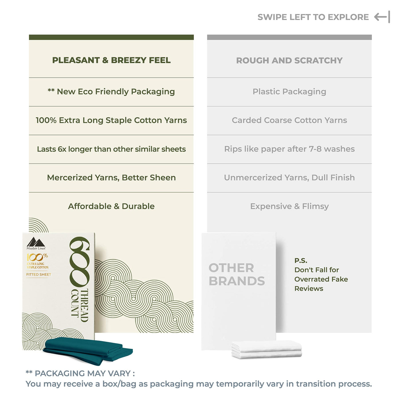 New Better & Improved 2023 Version - An authentic Fitted Sheet 600 Thread Count weave delivers the durability of Hotel Sheets. We use yarns made with 100% long staple cotton fiber and a gorgeous sateen weave. Upgrade your living space with this luxury 600-thread-count fitted sheet, available in several classic and bold colors.