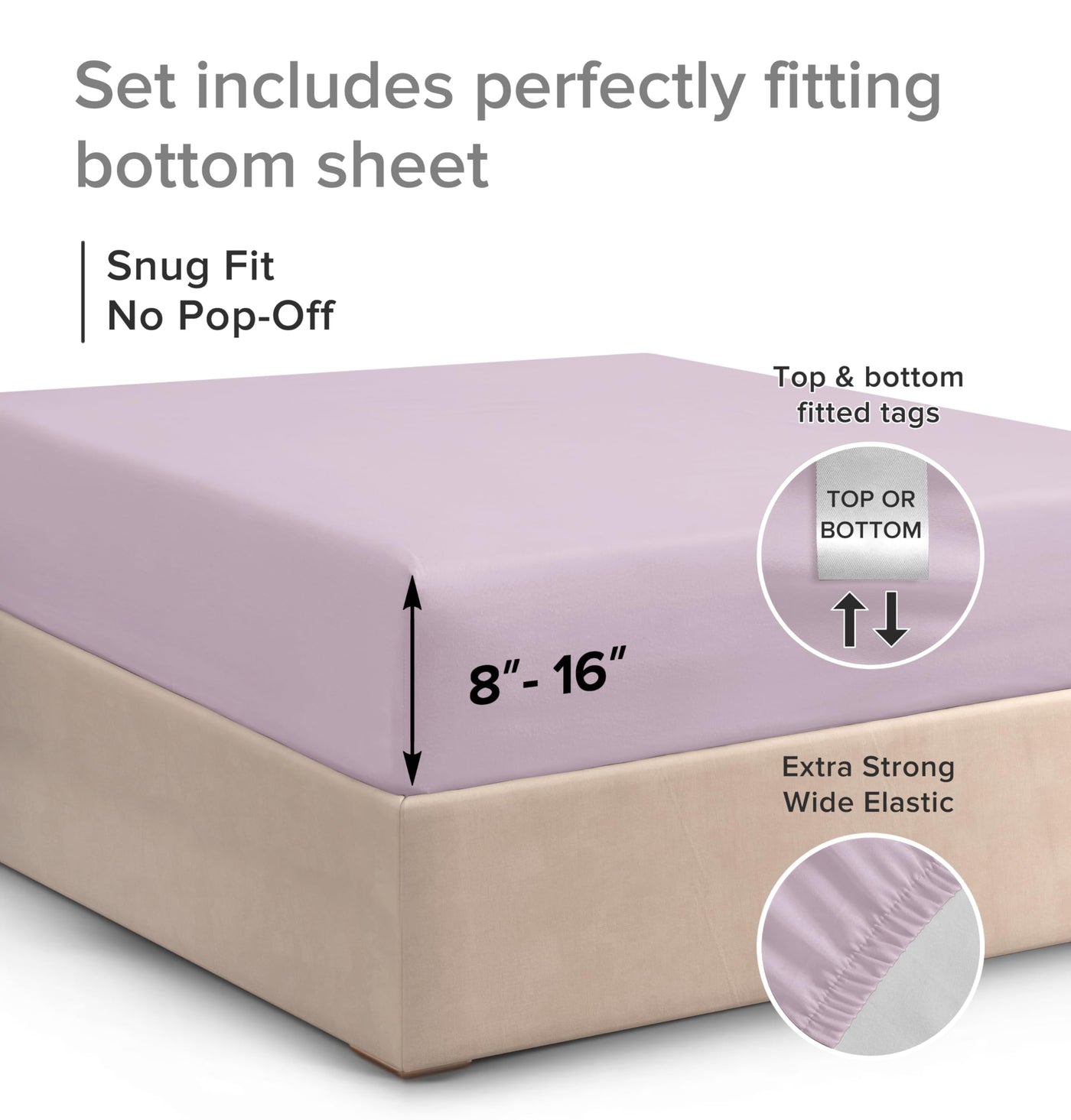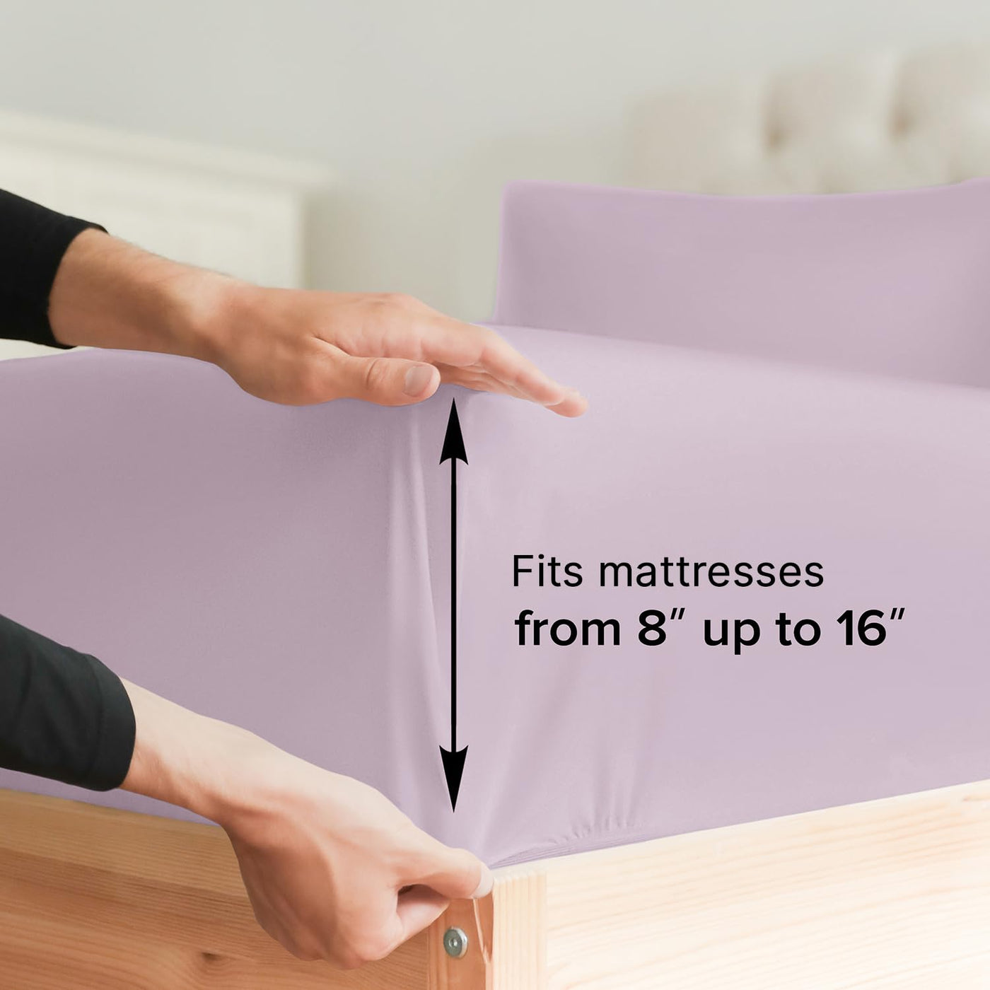 Queen Size Fitted Bed Sheet - Hotel Luxury Single Fitted Sheet Only - Fits Mattress Up To 16 - Extra Soft, Wrinkle Free, And Breathable - Bottom Fitted Sheet - Light Lavender Single Fitted Sheet Only