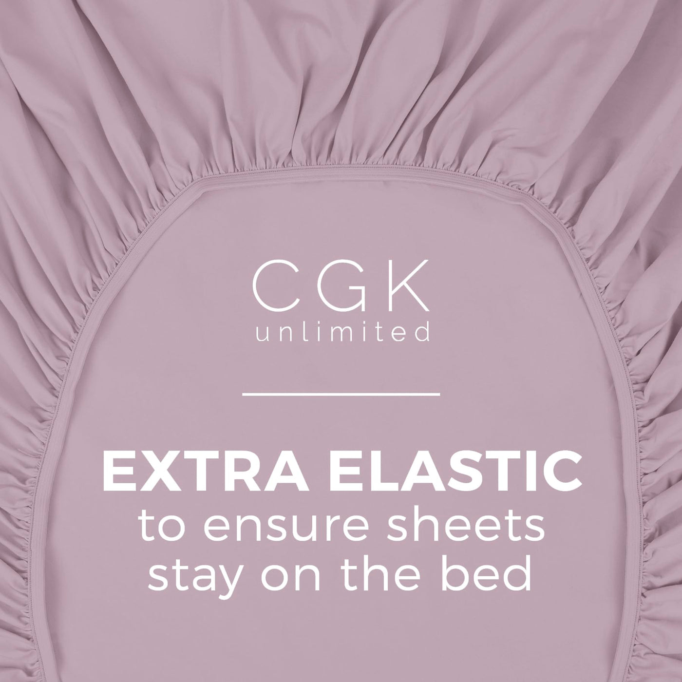 Soft & Comfortable, Queen Premium Fitted Sheet Pairs Perfectly with Our Sheet & Pillowcase Sets - Deep Pockets to Easily Fit Over Tall Mattresses, Pillow-Top Mattresses, Mattress Toppers, or Padded Mattresses! Don’t settle for a low-quality, poorly stitched Queen sheet that tears easily and feels rough and uncomfortable against the skin. At CGK Unlimited, we pride ourselves on our Deep Pocket Queen Fitted Sheet giving you a premium quality, buttery soft, double-brushed fabric comfort for a deep, luxurious, restful sleep. Cooling and breathable, our machine-washable Queen size fitted sheet is made of super-fine microfiber that resists pilling, tearing, shrinking, and fading. Unlike other Queen size fitted sheets that are ill-fitting and a struggle to get on your bed, our Queen fitted sheet has deep pockets to fit mattresses up to 16 inches tall, for a quicker, easier time making the bed. Fits over mattress toppers and air mattresses, too! CGK Unlimited’s Queen single fitted sheet features: -1 Fitted Sheet (60” x 80”) -Premium 100% Brushed Fabric -Luxurious and Buttery Soft -Cooling and Breathable -Deep Pockets to Fit Mattresses up to 16” Deep -Easy to Care For -Machine Washable! At CGK Unlimited, we love giving our customers the gift of deep, luxurious sleep - at an affordable price. We have high standards for our sheets, and work hard to uphold those standards and keep our customers happy and well-rested. Our hotel quality, ultra soft Queen sized sheets will leave you sleeping deeply. Mix and match with other coordinating CGK Sheet & Pillowcase Sets.