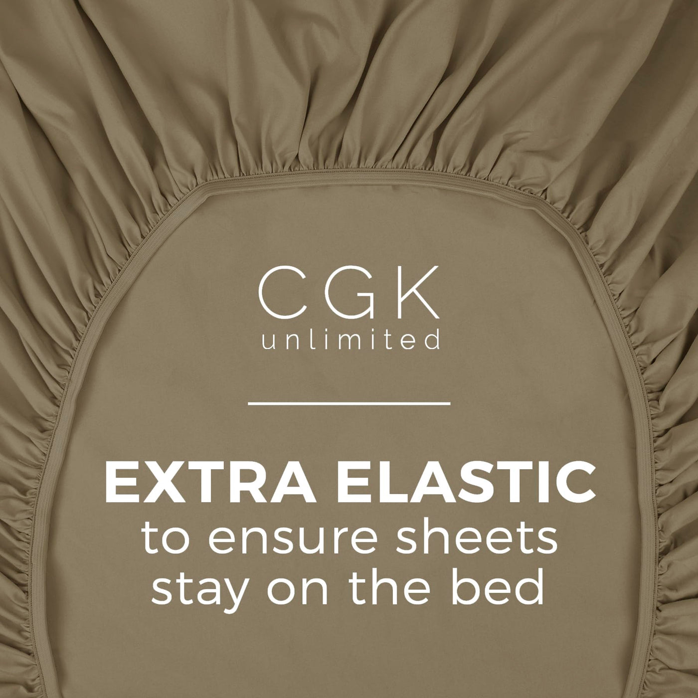 Soft & Comfortable, Queen Premium Fitted Sheet Pairs Perfectly with Our Sheet & Pillowcase Sets - Deep Pockets to Easily Fit Over Tall Mattresses, Pillow-Top Mattresses, Mattress Toppers, or Padded Mattresses! Don’t settle for a low-quality, poorly stitched Queen sheet that tears easily and feels rough and uncomfortable against the skin. At CGK Unlimited, we pride ourselves on our Deep Pocket Queen Fitted Sheet giving you a premium quality, buttery soft, double-brushed fabric comfort for a deep, luxurious, restful sleep. Cooling and breathable, our machine-washable Queen size fitted sheet is made of super-fine microfiber that resists pilling, tearing, shrinking, and fading. Unlike other Queen size fitted sheets that are ill-fitting and a struggle to get on your bed, our Queen fitted sheet has deep pockets to fit mattresses up to 16 inches tall, for a quicker, easier time making the bed. Fits over mattress toppers and air mattresses, too! CGK Unlimited’s Queen single fitted sheet features: -1 Fitted Sheet (60” x 80”) -Premium 100% Brushed Fabric -Luxurious and Buttery Soft -Cooling and Breathable -Deep Pockets to Fit Mattresses up to 16” Deep -Easy to Care For -Machine Washable! At CGK Unlimited, we love giving our customers the gift of deep, luxurious sleep - at an affordable price. We have high standards for our sheets, and work hard to uphold those standards and keep our customers happy and well-rested. Our hotel quality, ultra soft Queen sized sheets will leave you sleeping deeply. Mix and match with other coordinating CGK Sheet & Pillowcase Sets.