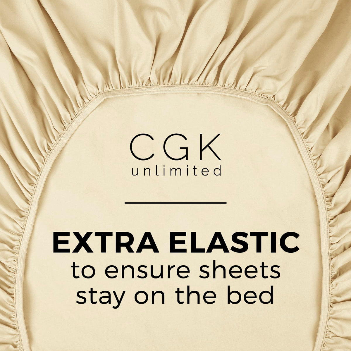 Soft & Comfortable, Queen Premium Fitted Sheet Pairs Perfectly with Our Sheet & Pillowcase Sets - Deep Pockets to Easily Fit Over Tall Mattresses, Pillow-Top Mattresses, Mattress Toppers, or Padded Mattresses! Don’t settle for a low-quality, poorly stitched Queen sheet that tears easily and feels rough and uncomfortable against the skin. At CGK Unlimited, we pride ourselves on our Deep Pocket Queen Fitted Sheet giving you a premium quality, buttery soft, double-brushed fabric comfort for a deep, luxurious, restful sleep. Cooling and breathable, our machine-washable Queen size fitted sheet is made of super-fine microfiber that resists pilling, tearing, shrinking, and fading. Unlike other Queen size fitted sheets that are ill-fitting and a struggle to get on your bed, our Queen fitted sheet has deep pockets to fit mattresses up to 16 inches tall, for a quicker, easier time making the bed. Fits over mattress toppers and air mattresses, too! CGK Unlimited’s Queen single fitted sheet features: -1 Fitted Sheet (60” x 80”) -Premium 100% Brushed Fabric -Luxurious and Buttery Soft -Cooling and Breathable -Deep Pockets to Fit Mattresses up to 16” Deep -Easy to Care For -Machine Washable! At CGK Unlimited, we love giving our customers the gift of deep, luxurious sleep - at an affordable price. We have high standards for our sheets, and work hard to uphold those standards and keep our customers happy and well-rested. Our hotel quality, ultra soft Queen sized sheets will leave you sleeping deeply. Mix and match with other coordinating CGK Sheet & Pillowcase Sets.
