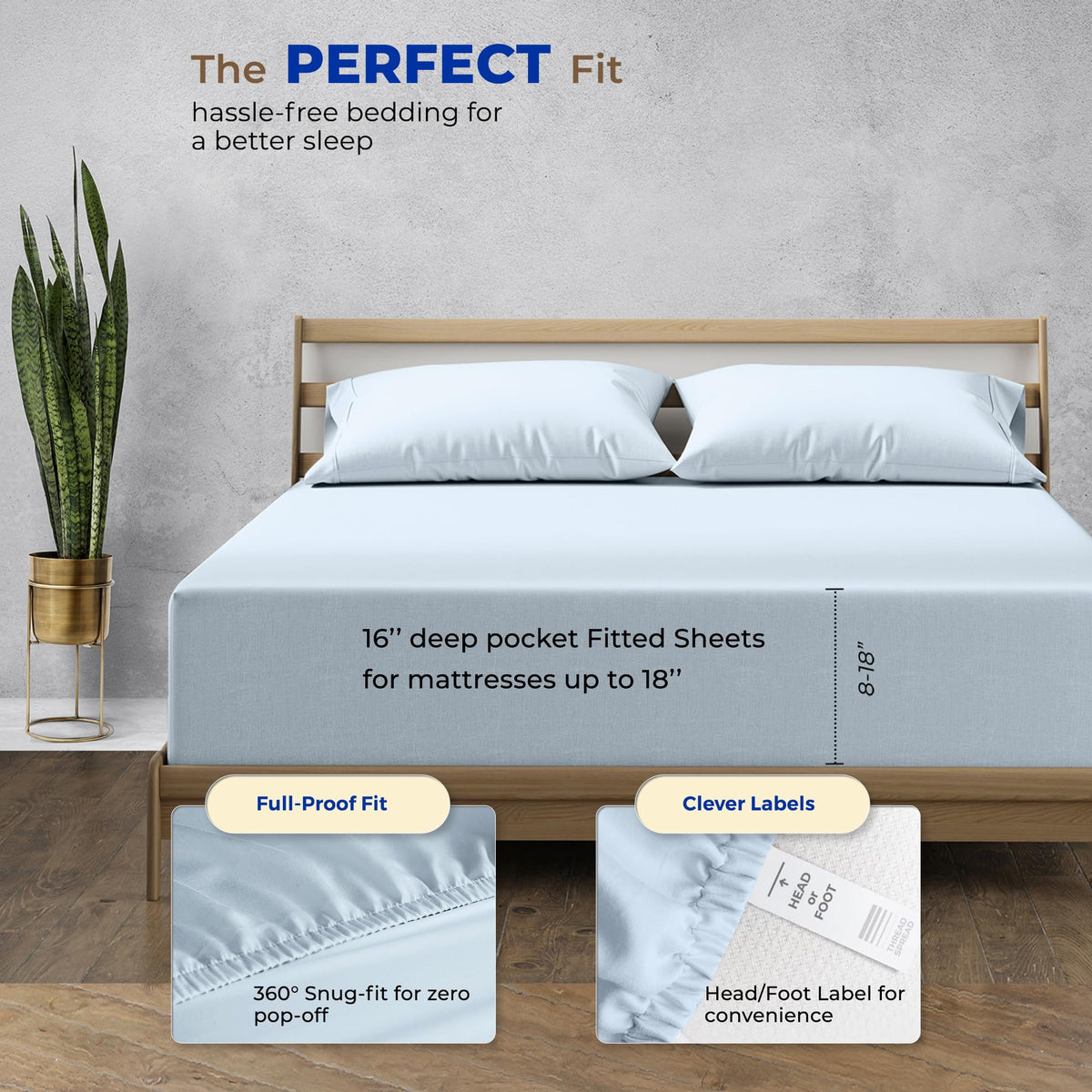 Thread Spread Luxury Egyptian Cotton California King Fitted Sheet Only - 1000 Thread Count Cal King Sheets Deep Pocket Fitted, Soft Sateen Weave Bottom Sheet - Fits Upto 18' Deep Mattress - Light Blue