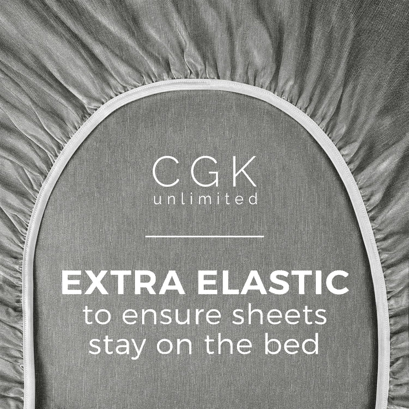 Soft & Comfortable, Twin Premium Fitted Sheet Pairs Perfectly with Our Sheet & Pillowcase Sets - Deep Pockets to Easily Fit Over Tall Mattresses, Pillow-Top Mattresses, Mattress Toppers, or Padded Mattresses! Don’t settle for a low-quality, poorly stitched Twin sheet that tears easily and feels rough and uncomfortable against the skin. At CGK Unlimited, we pride ourselves on our Deep Pocket Twin Fitted Sheet giving you a premium quality, buttery soft, double-brushed fabric comfort for a deep, luxurious, restful sleep. Cooling and breathable, our machine-washable Twin size fitted sheet is made of super-fine microfiber that resists pilling, tearing, shrinking, and fading. Unlike other Twin size fitted sheets that are ill-fitting and a struggle to get on your bed, our Twin fitted sheet has deep pockets to fit mattresses up to 16 inches tall, for a quicker, easier time making the bed. Fits over mattress toppers and air mattresses, too! CGK Unlimited’s Twin single fitted sheet features: -1 Fitted Sheet (39” x 75”) -Premium 100% Brushed Fabric -Luxurious and Buttery Soft -Cooling and Breathable -Deep Pockets to Fit Mattresses up to 16” Deep -Easy to Care For -Machine Washable! At CGK Unlimited, we love giving our customers the gift of deep, luxurious sleep - at an affordable price. We have high standards for our sheets, and work hard to uphold those standards and keep our customers happy and well-rested. Our hotel quality, ultra soft Twin sized sheets will leave you sleeping deeply. Mix and match with other coordinating CGK Sheet & Pillowcase Sets.