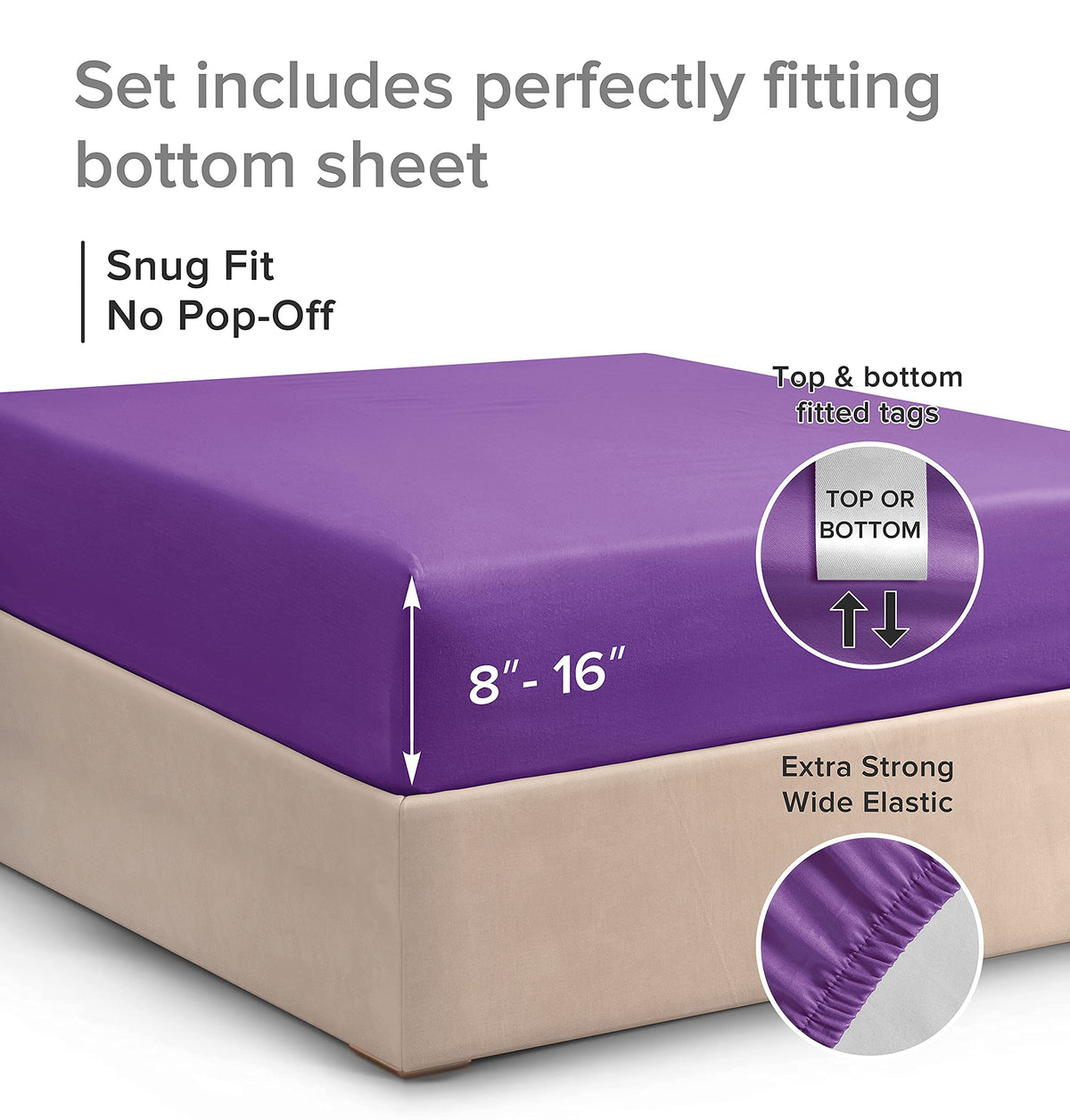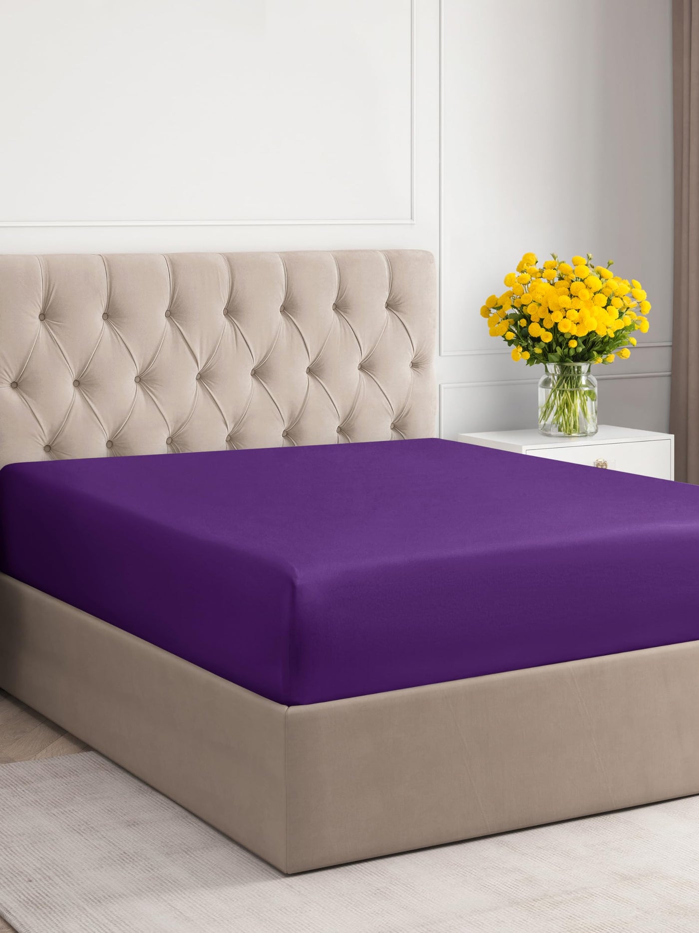 Twin Xl Fitted Bed Sheet - Hotel Luxury & Cooling Single Fitted Sheet Only - Easily Fits Mattress Up To 16 Inches Perfectly - Soft, Wrinkle Free, Breathable & Comfy Purple Single Fitted Bed Sheet