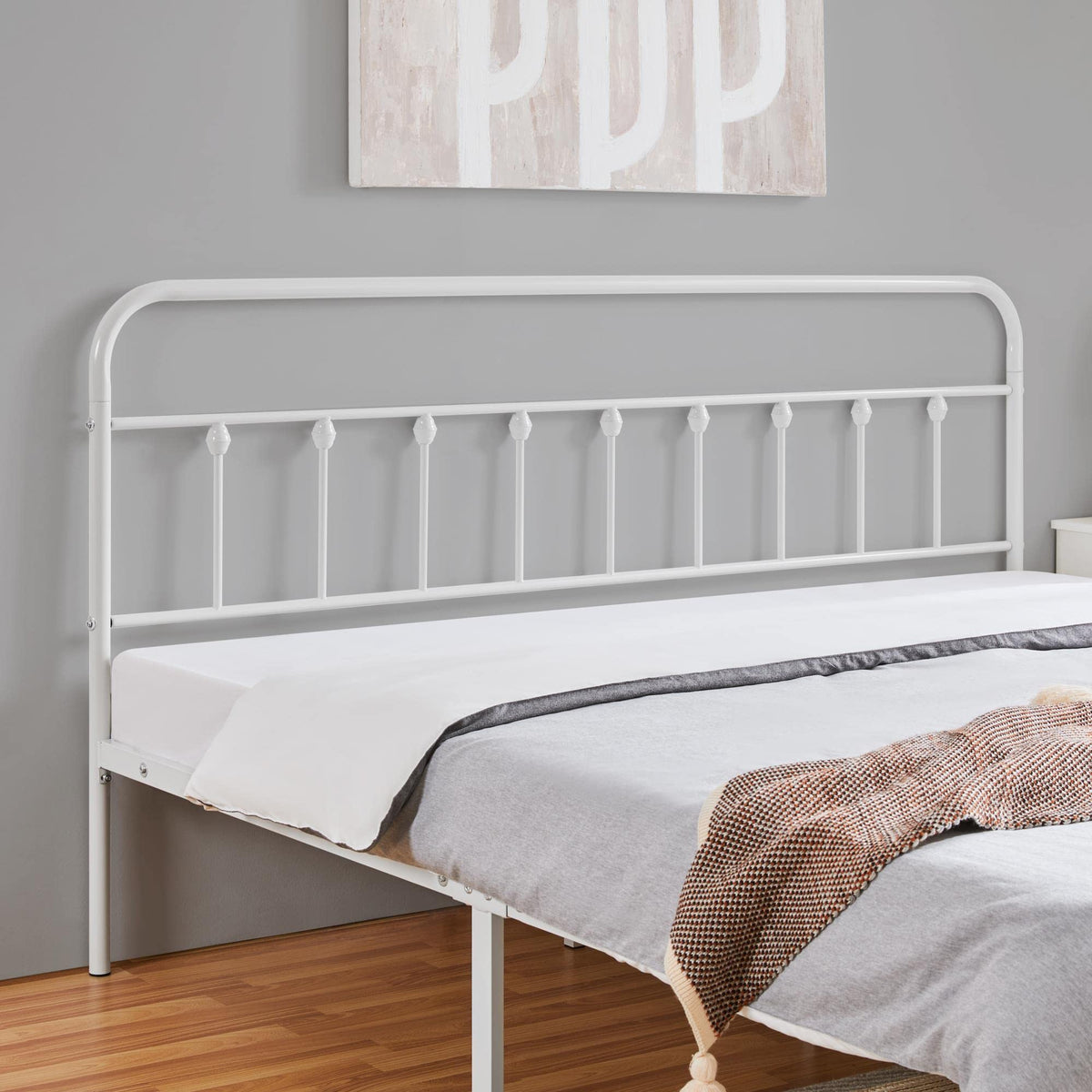 Quick Overview: Looking for a practical bed frame with a vintage look, this iron platform bed will be a budget-friendly choice. Inspired by the traditional entrance gates, this bed features curved lines, vintage ball decorations and a metallic finish, creating an elegant and warm tone. The bed is fully constructed of a powder-coated metal frame for solid support and long-term durability. Cleaning will be a breeze; simply wipe clean with a soft, dry cloth. The high headboard can protect your head while also allowing you to sit up comfortably. The 12.6-inch clearance beneath the bed provides additional storage space for odds and ends. Available in Twin, Full, Queen and King sizes. Multiple colors are available to meet your specific needs. Ideal for guest rooms, bedrooms, dormitories, apartments and more.