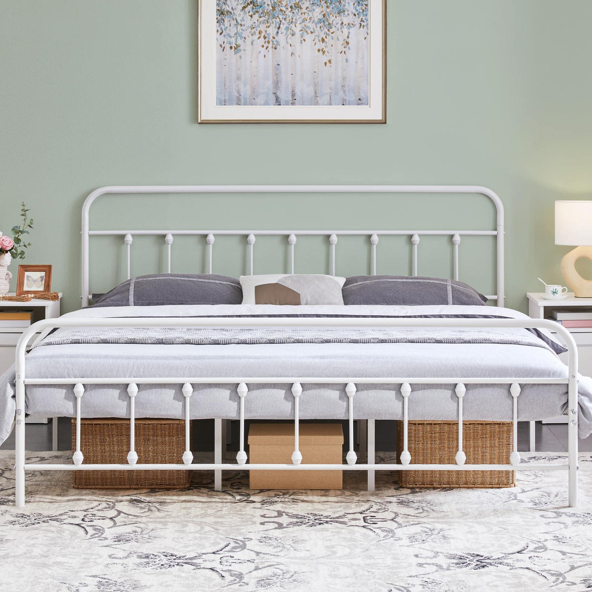 Yaheetech Classic Metal Platform Bed Frame Mattress Foundation With Victorian Style Iron-Art Headboard/Footboard/Under Bed Storage/No Box Spring Needed/King Size White