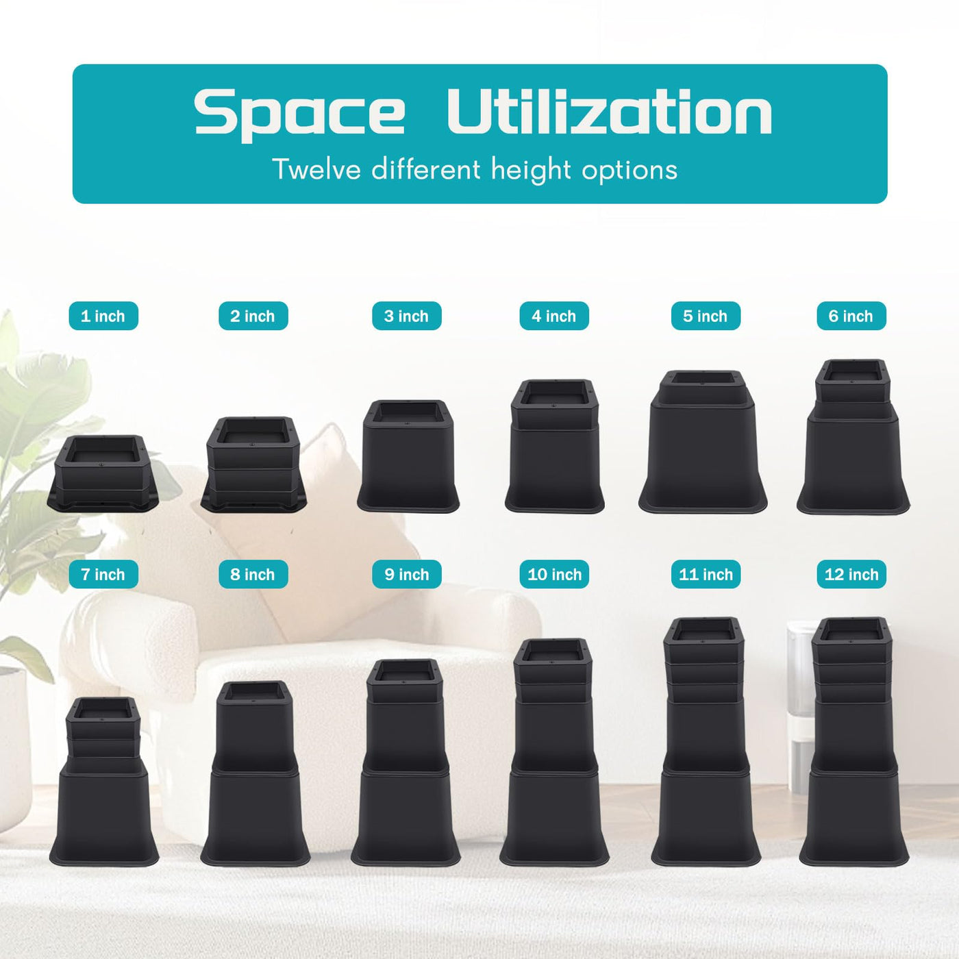 Annkut Bed Risers 12 Inch Heavy Duty,Elevation In Heights 1,2,3,4,5,6,7,8,9,10,11,12 Inch,Adjustable Furniture Risers For Chair