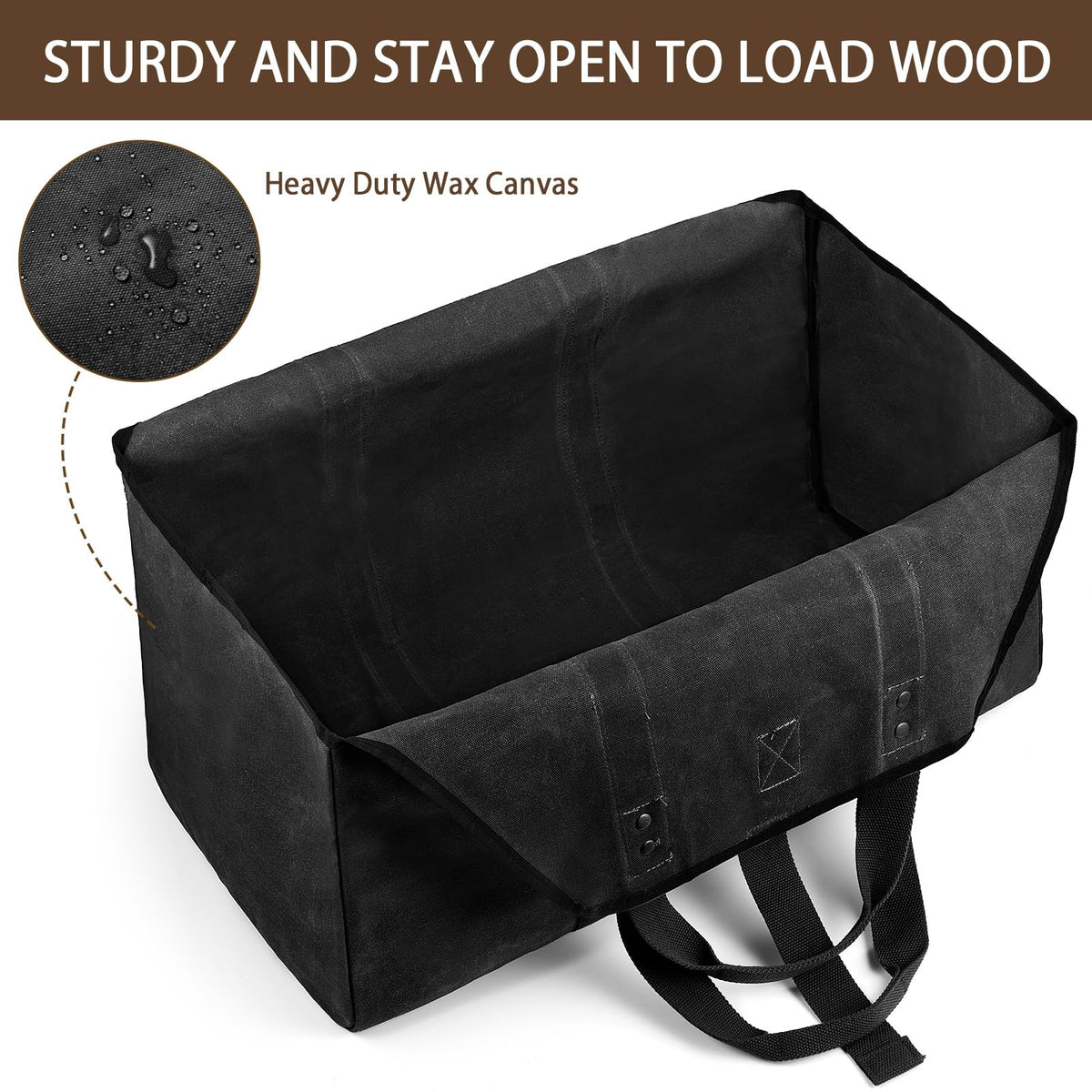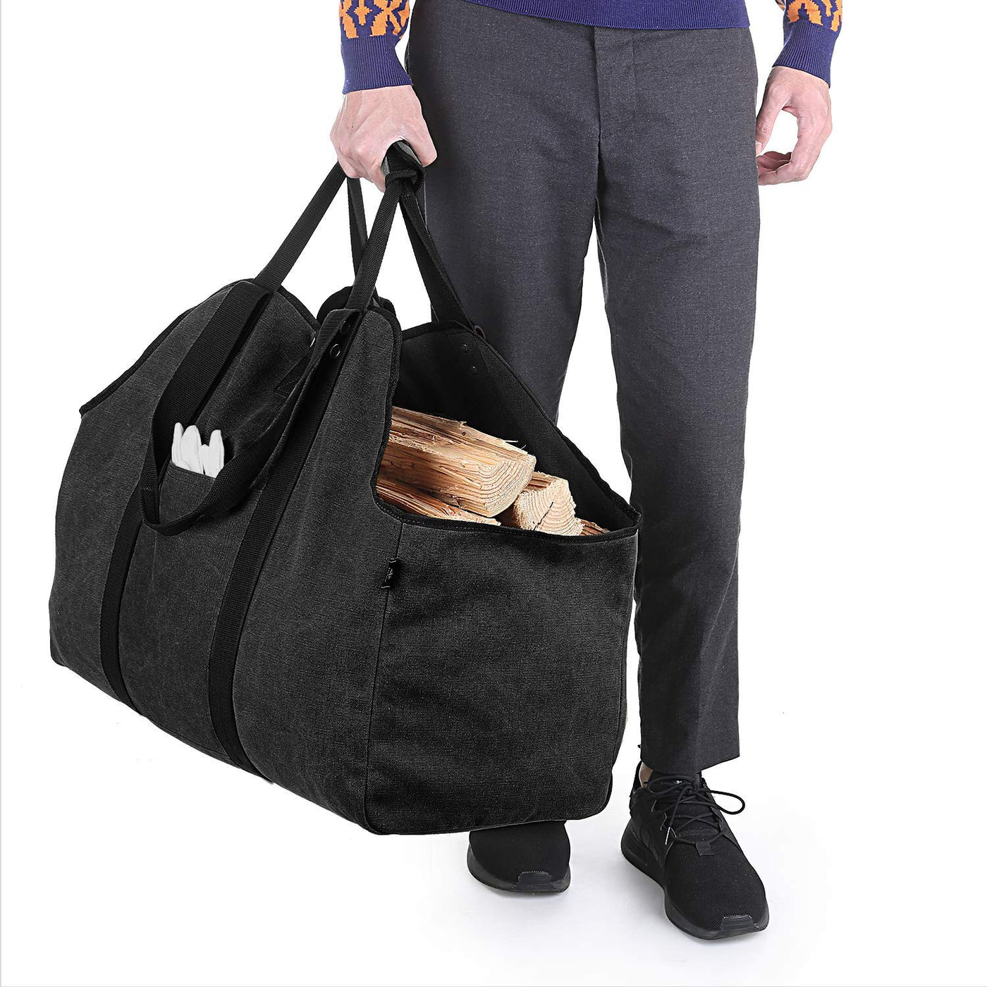 Bonthee Extra Large Waterproof Firewood Log Carrier Canvas Firewood Holder Indoor With Shoulder Strap And Top Handles Contained
