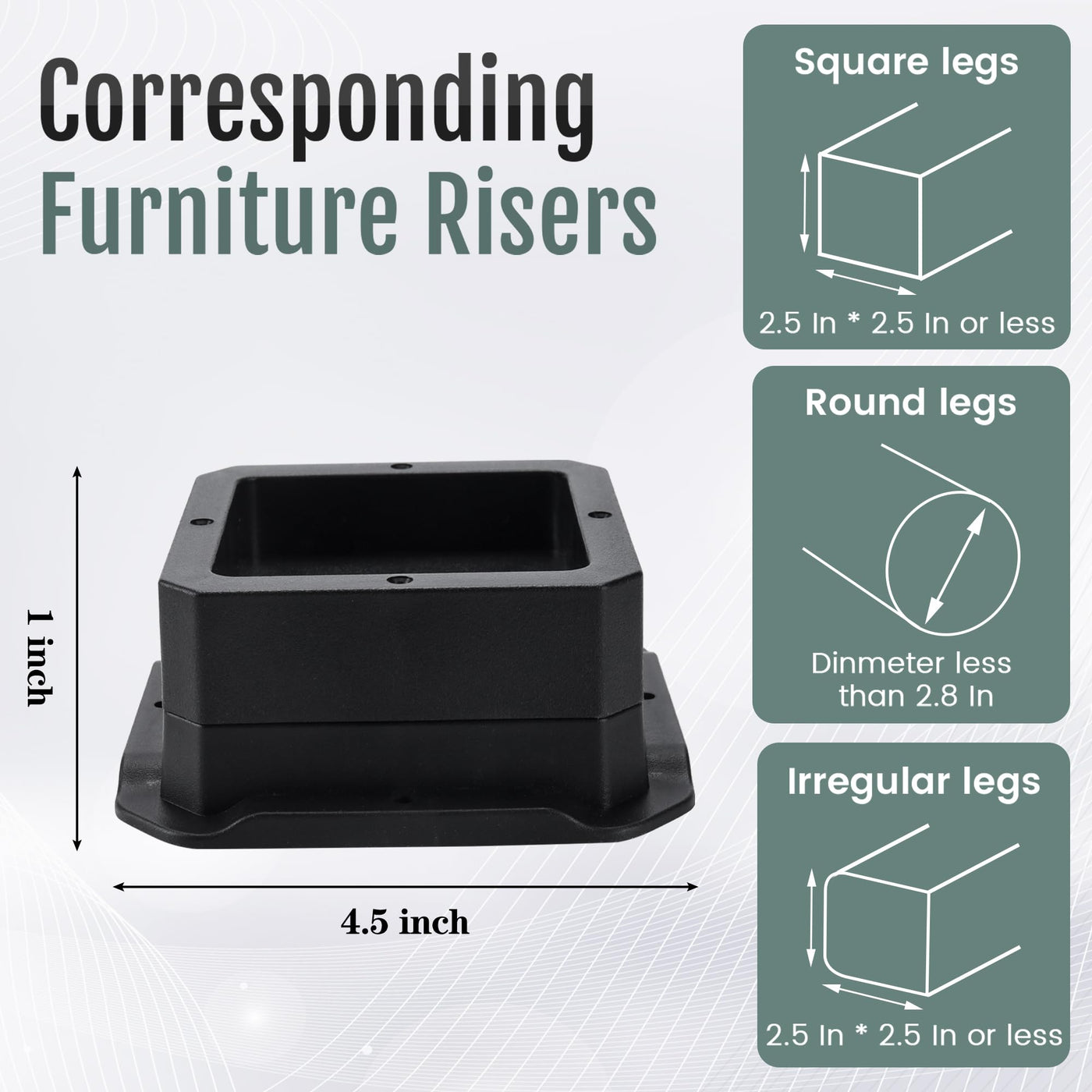 Btsd-Home Bed Risers 1 Inch Heavy Duty Furniture Risers For Sofa Table And Chair Black 4 Pack