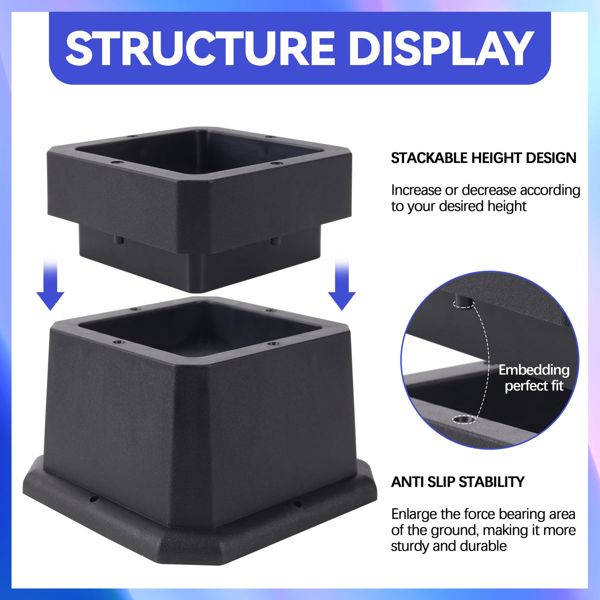 Btsd-Home Bed Risers 3 Inch Or 2 Inch Heavy Duty Furniture Risers Adjustable Dorm Bed Lifts Risers Table Desks Legs Blocks 4 Pac