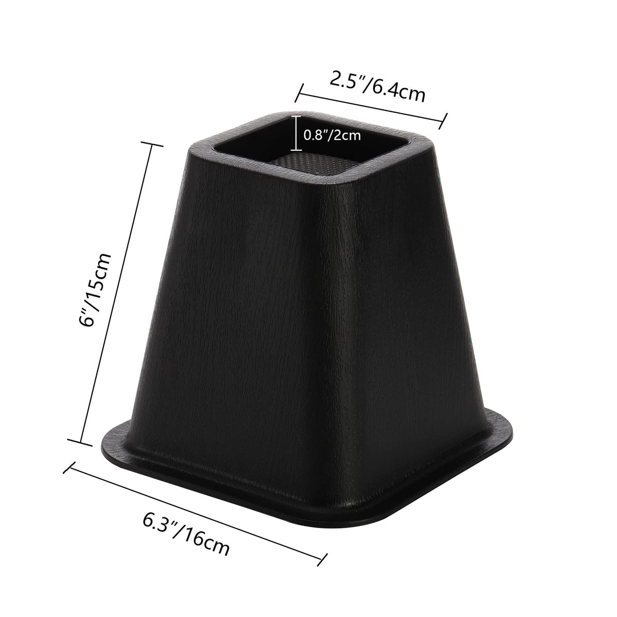 Mezchi Bed Furniture Risers Includes 6 Pack. This Riser Is 6 Inches In Height. The Risers Are 2.5 Inches Wide And 0.8-Inch In Depth, With A Trapezoid Shape. Made Of Durable Abc Plastic, Holding Up To 2200Lbs Per Leg, Protecting Your Floor From Damage, And Won'T Sway And Tilt. With A Smooth Face, It'S Easy To Clean. It'S A Universal Fit For Furniture, Like Beds, Chairs, Sofas, Desks And Etc. Also, Furniture Risers Can Not Only Increase Your Home Storage Space, But Also Convenience Your Daily Cleaning. Our Product Is Easy To Install. Just Lift The Furniture, Slip The Riser On, And The Installation Is Finished.