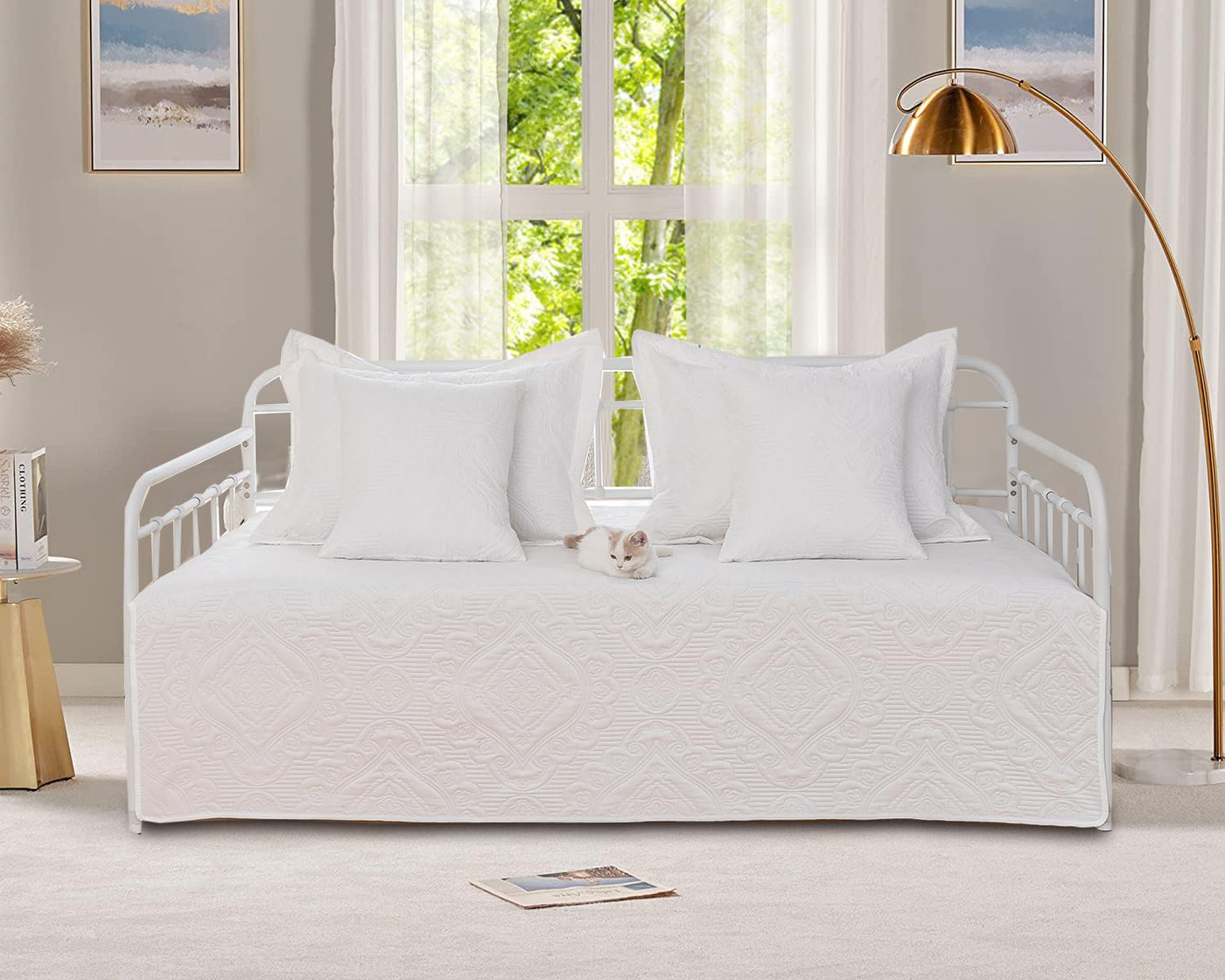 5-Piece Daybed Cover Set White,Twin Cozy Daybed Bedding Sets For All Season Double Sided-Quilting Daybed Comforter Bedspread, Ge