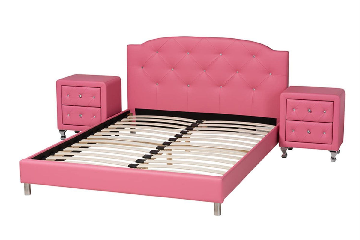 Baxton Studio Canterbury Contemporary Glam Pink Faux Leather Upholstered Queen Size 3-Piece Bedroom Set