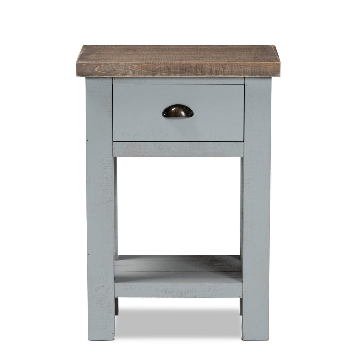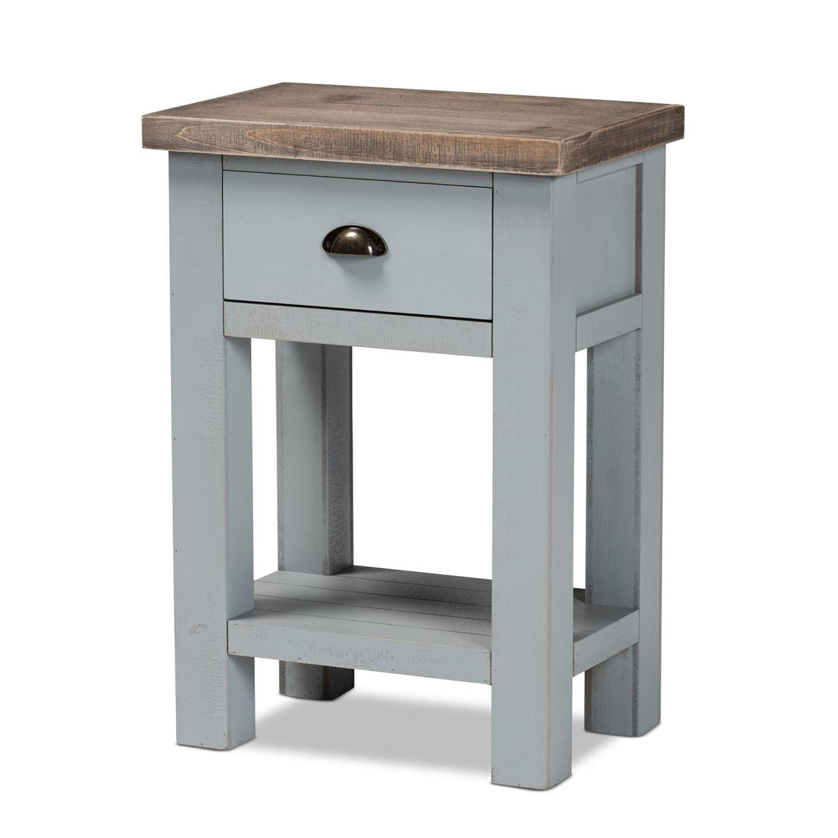 Baxton Studio Hastin Two-Tone Grey and Antique Brown Wood 1-Drawer End Table