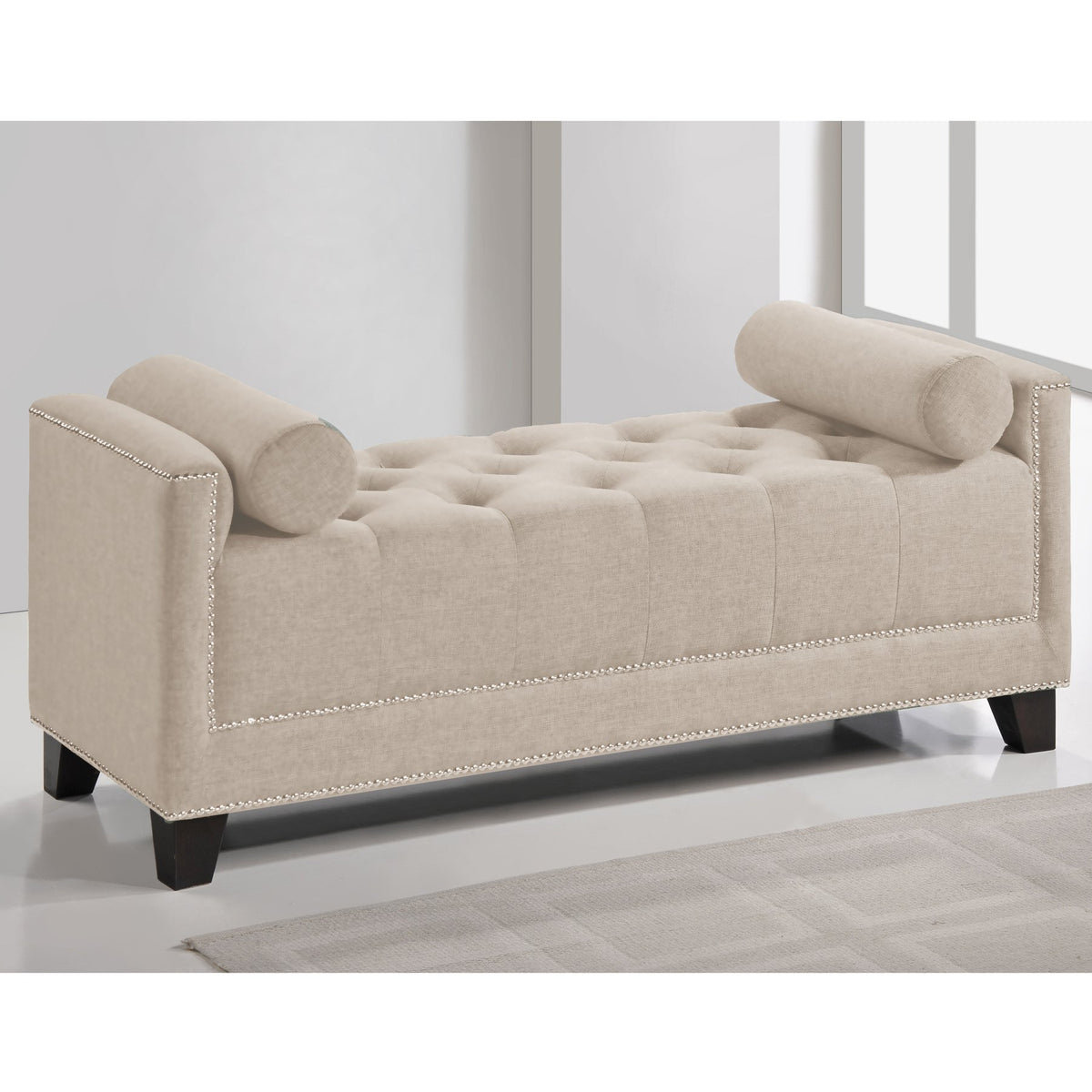 Contemporary, Comfortable And—Dare We Say?—Cheap. Here'S A Bedroom Furniture Set With Attention To Style And Quality That’S Peerless At This Price. Our Light Beige Queen Sized Contemporary Platform Bed And Contemporary Bench Are So Attractive And Snooze-Friendly They’Ll Make The Sandman Overstay His Welcome Each Night. The Bed’S Tufted Headboard, Dark Brown Wood Legs Wood Legs Look Perfect Paired With The Bench’S Grey Linen With Silver Nail Head Trim, Not To Mention Its Smooth Scroll Arms And Dark Brown Wooden Legs. Bed 65.2"W X 87.25"D X 58.25"H, Height To Top Of Slat: 9.25" Height Of Legs: 3.75", Bench 52.8"W X 20"D X 22.5"H, Seat 46.25"W X 20"D X 18"H.