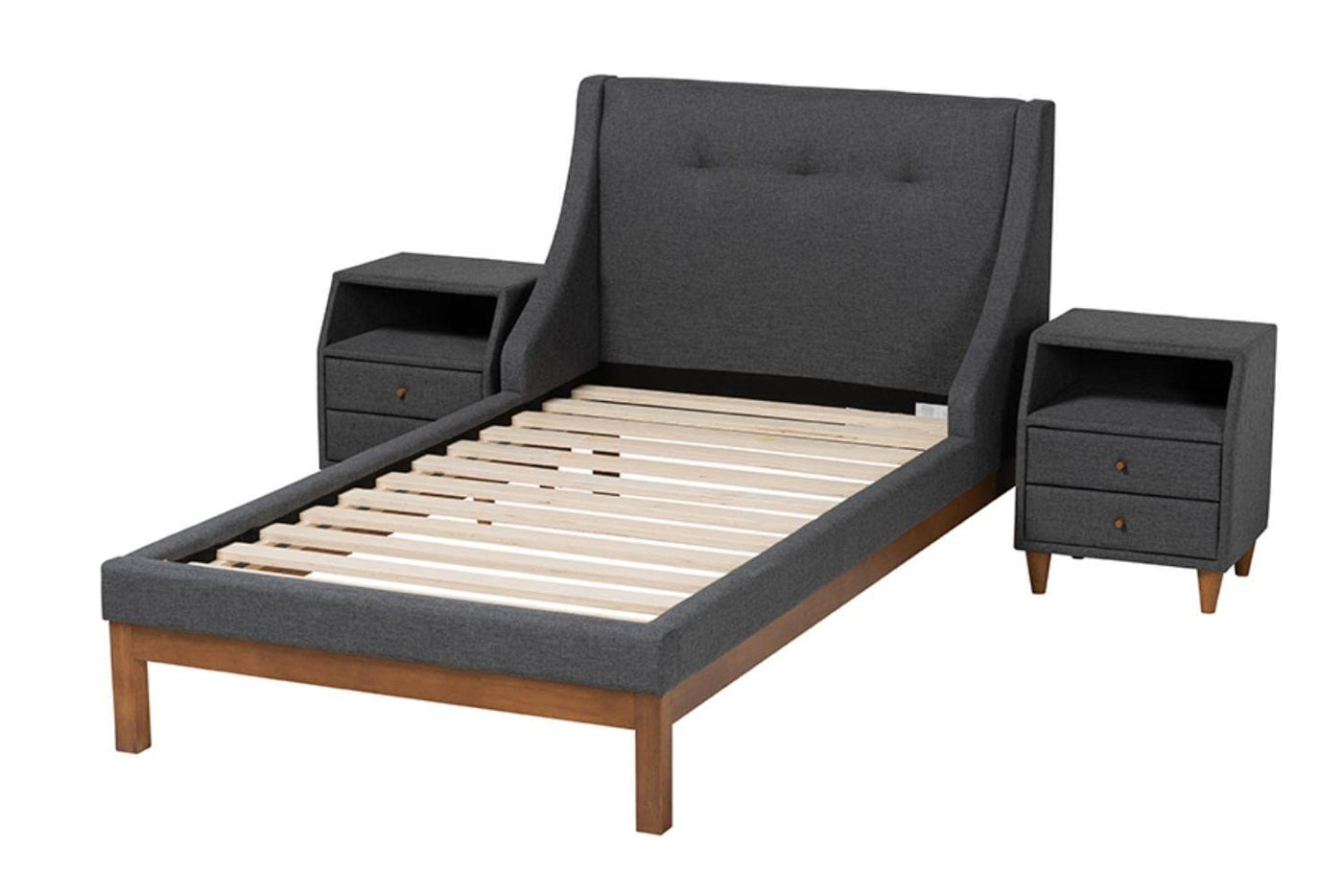 Baxton Studio Louvain Dark Grey Fabric Upholstered Twin Size 3-Piece Bedroom Set